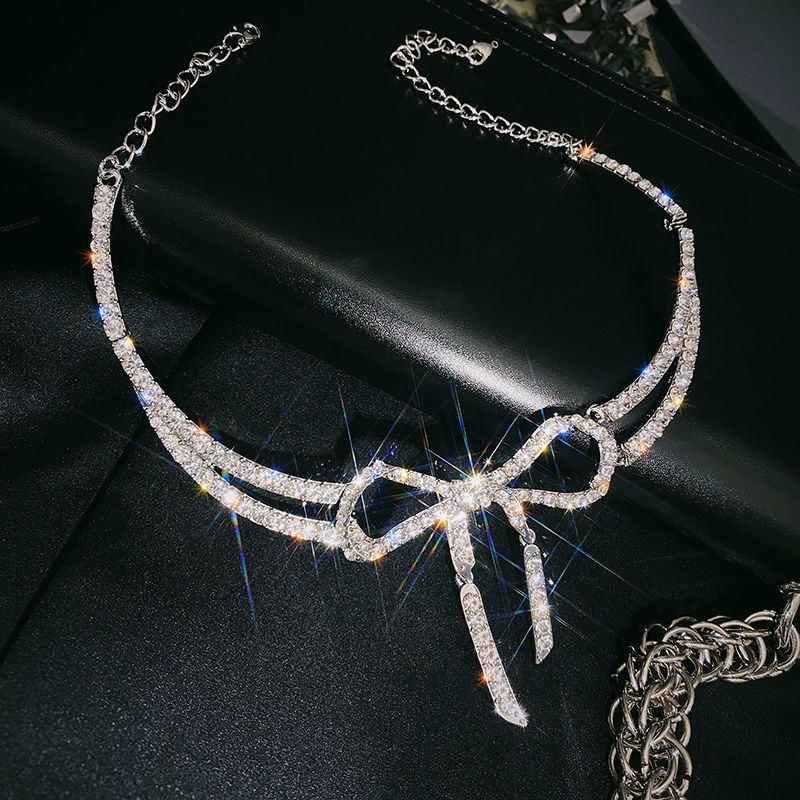 歐美時尚夸張個性鑲鉆蝴蝶結鎖骨鏈