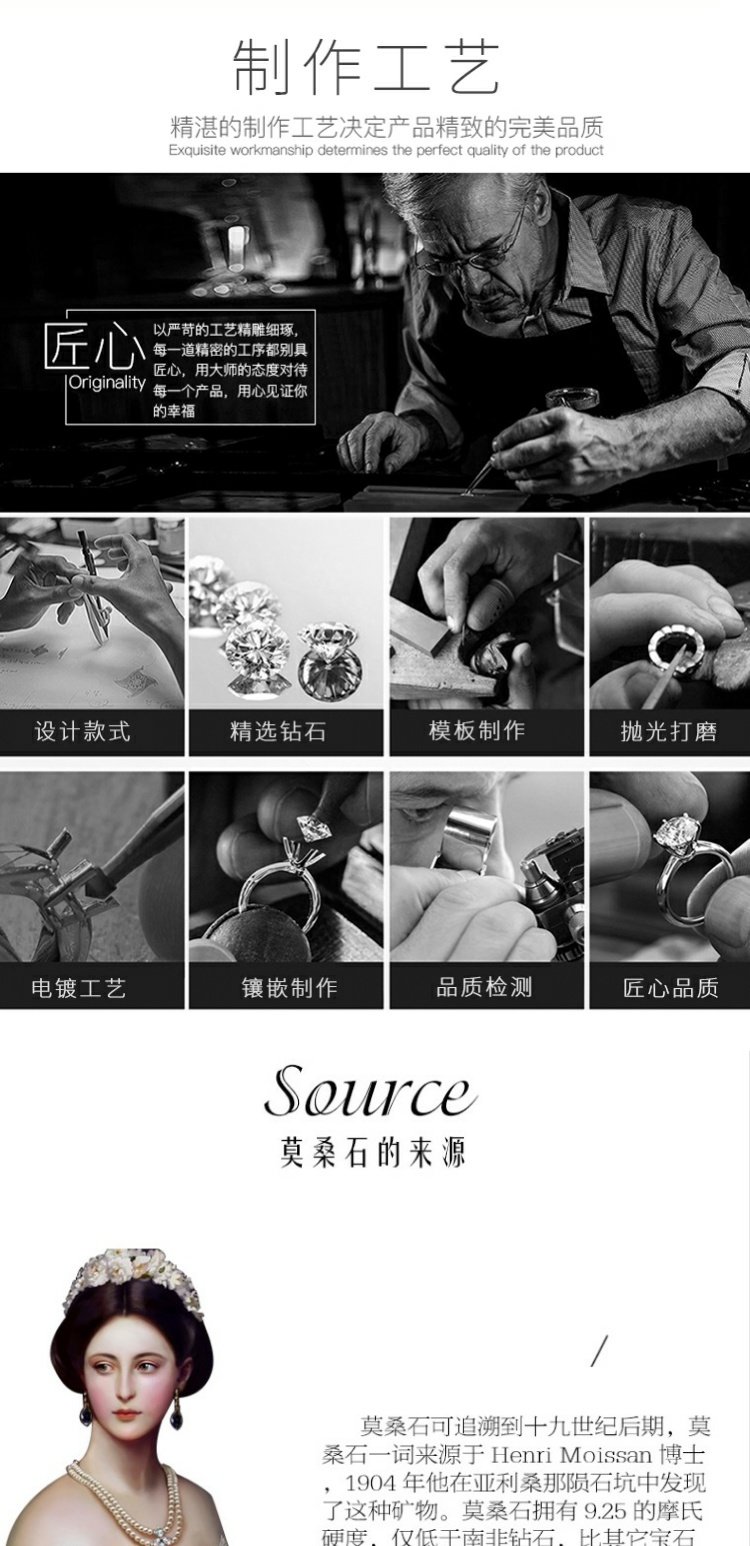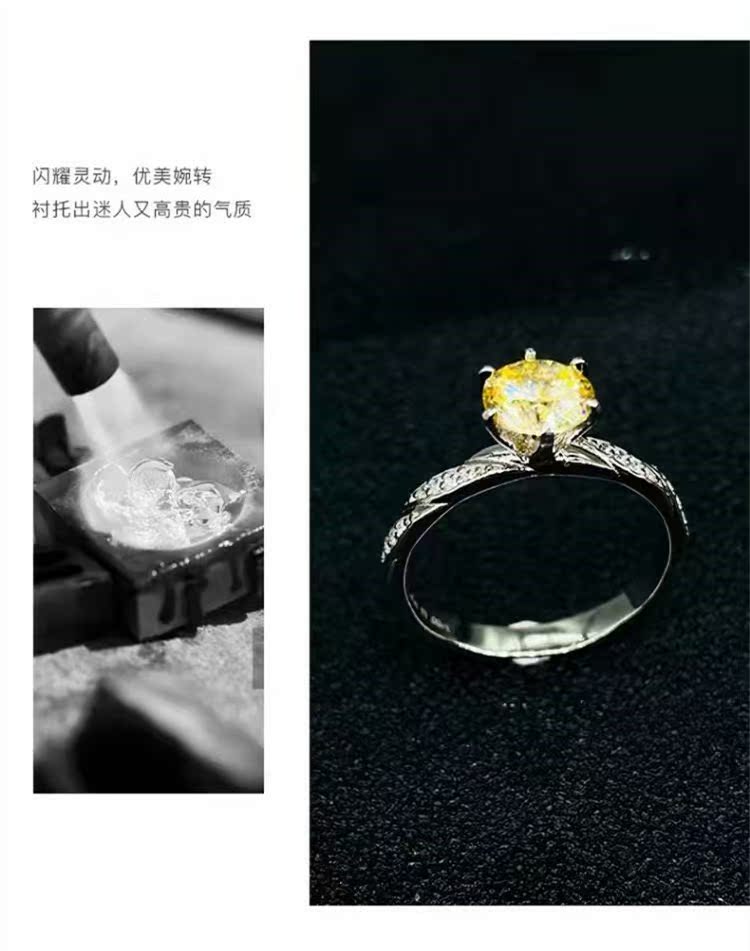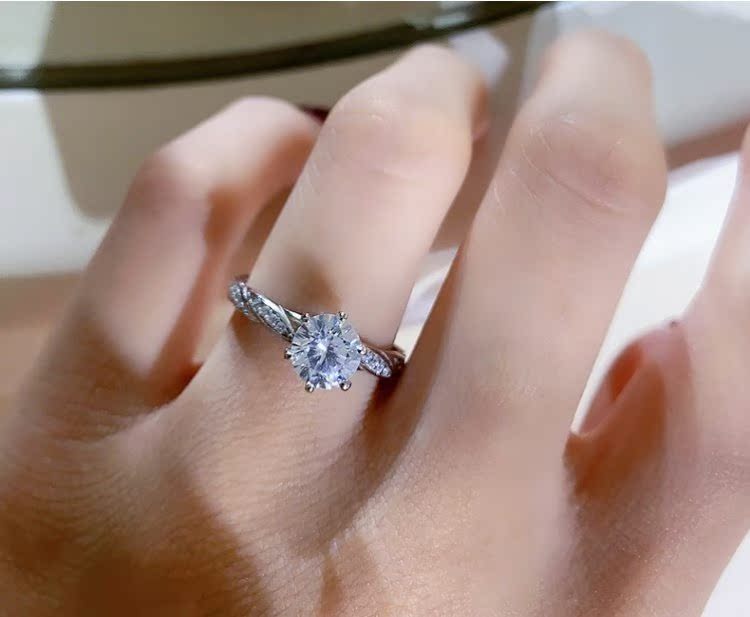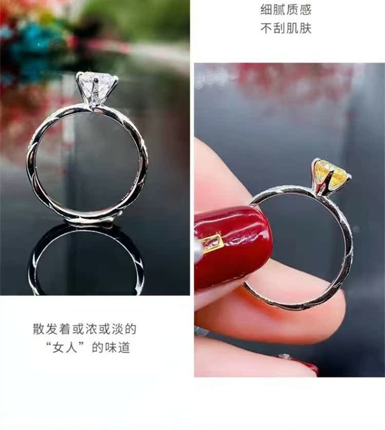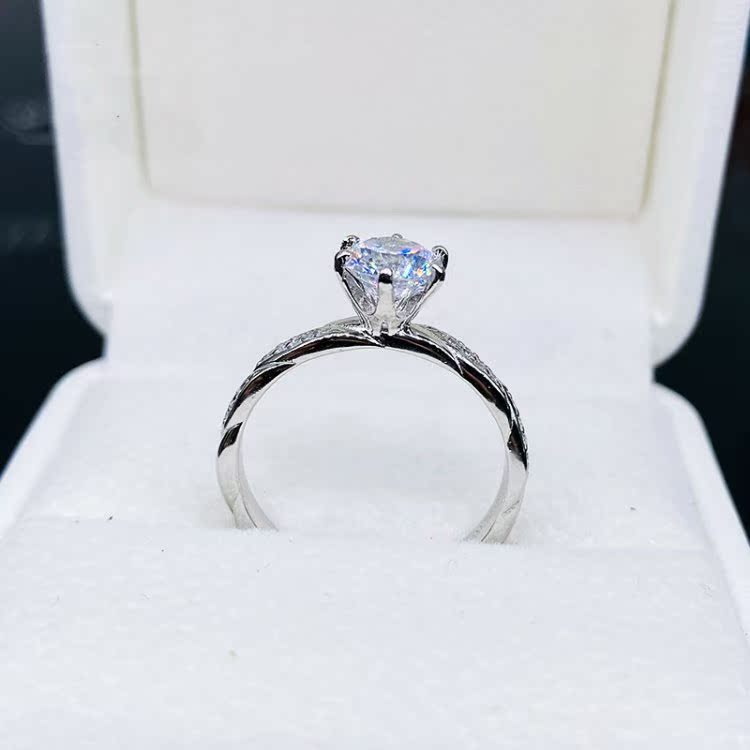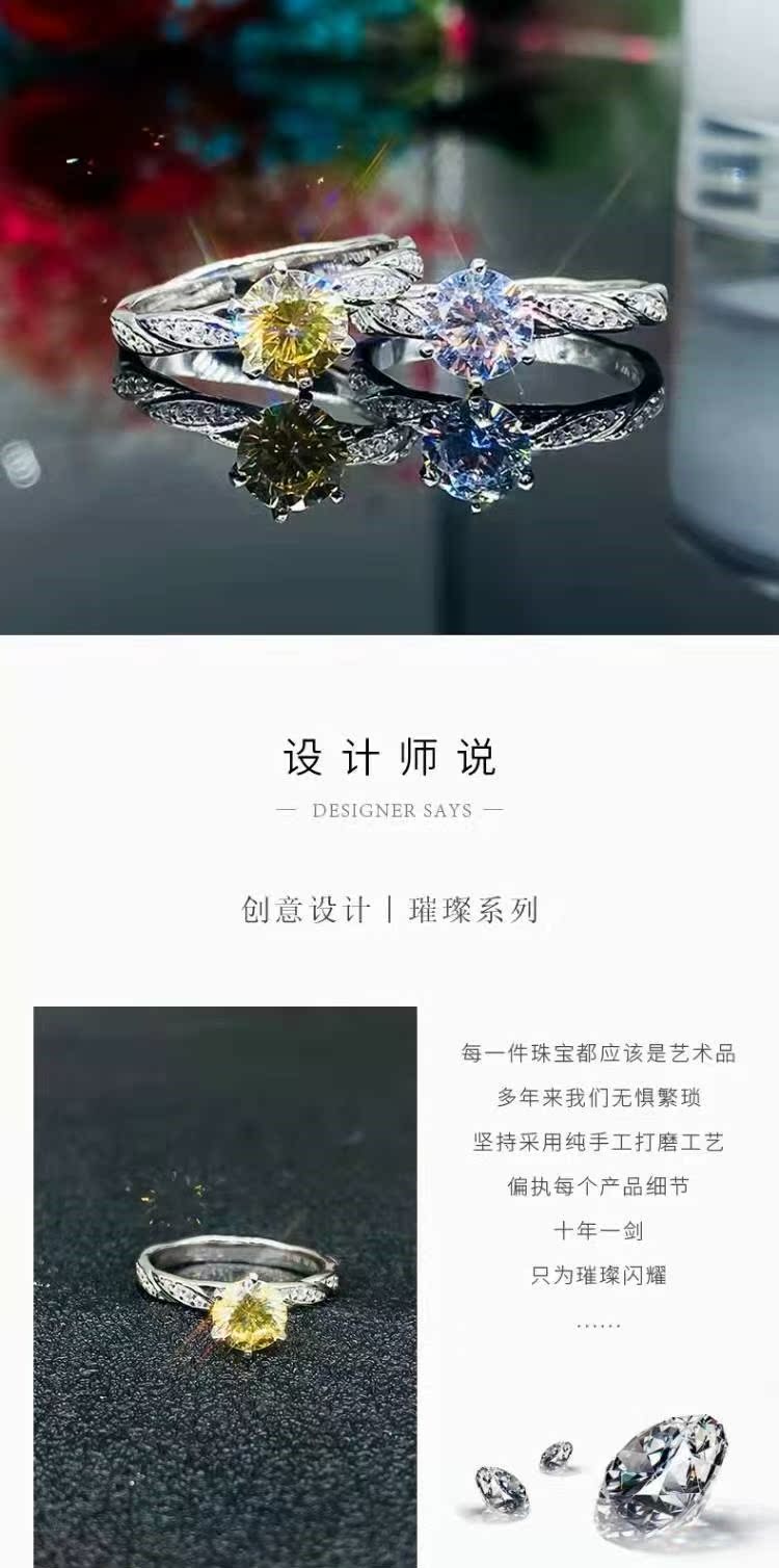 PT950鉑金進口莫桑石50分錯臂六爪戒指潮ins小眾黃鉆指環送女友新
