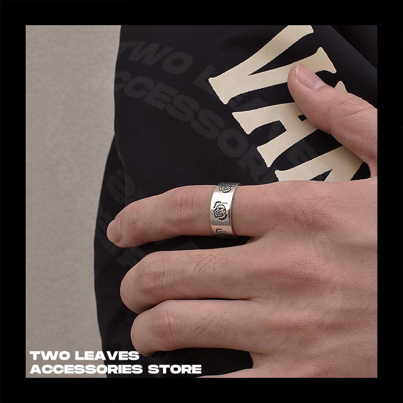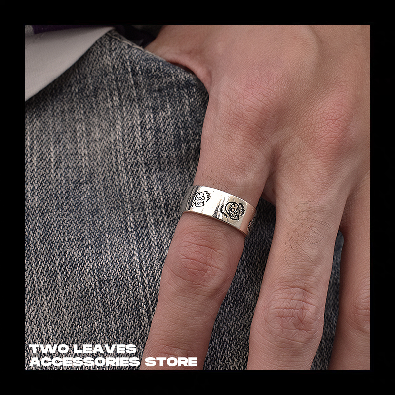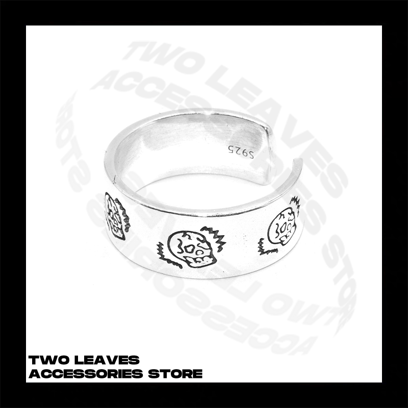 TWO LEAVES S925純銀閃電卡通骷髏開口戒指男女款潮嘻哈街頭指環