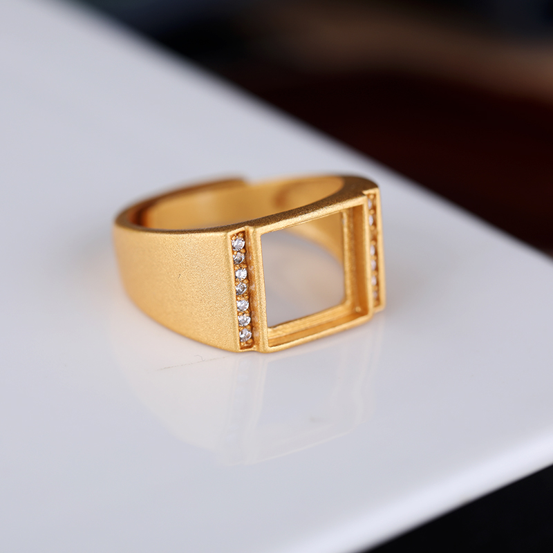 S925純銀戒指空托古法銀鎏金工藝鑲嵌翡翠玉石綠松石方戒托 10*10