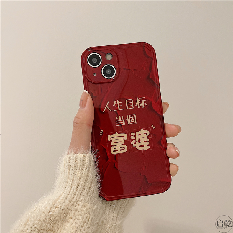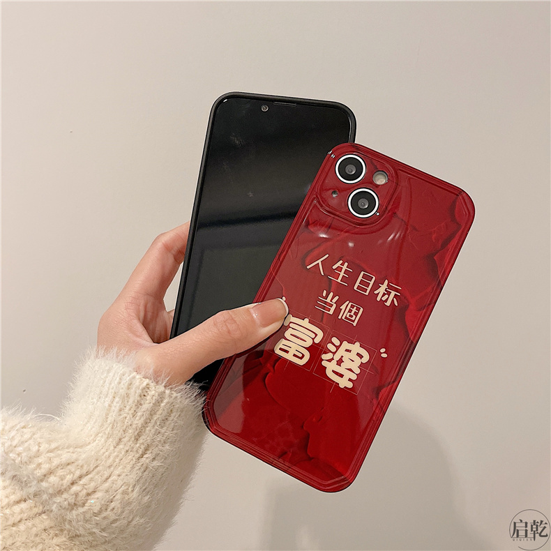 人生目標當個富婆iphone13手機殼適用蘋果13promax個性搞怪文字12/11惡搞創意xr/xsmax酒紅色8plus7新年新款