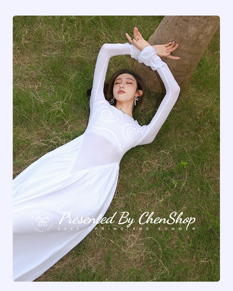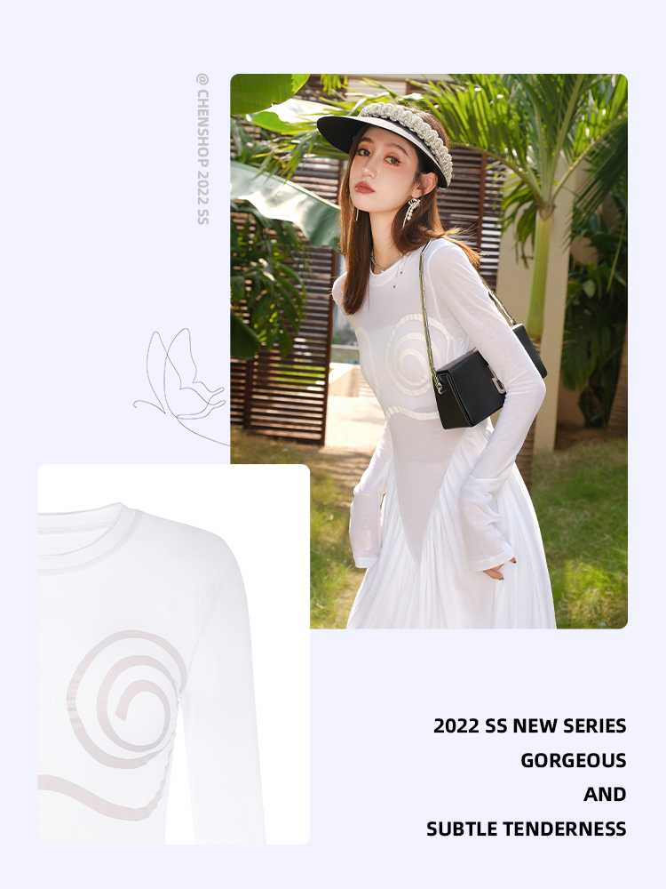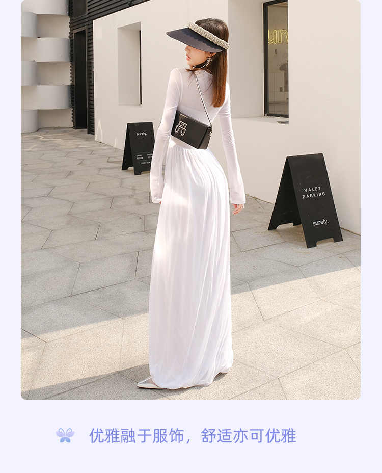 CONCISE-WHITE時尚長開衩打底連衣裙修身顯瘦CHENSHOP設計師品牌