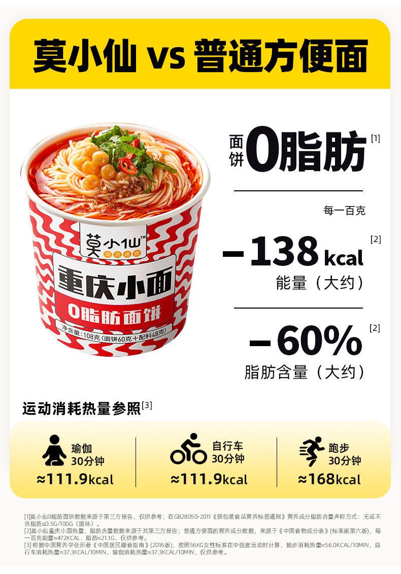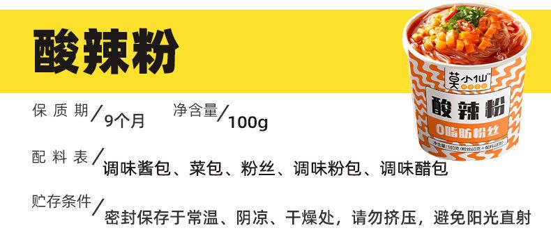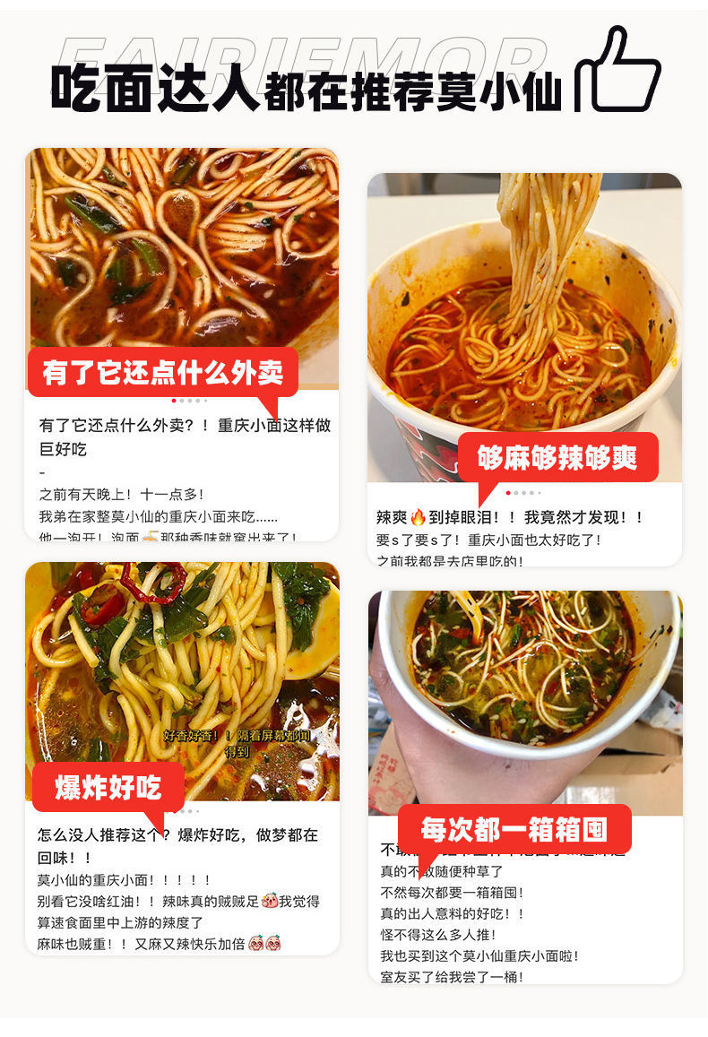 莫小仙正宗重慶小面酸辣粉桶裝泡面非油炸方便速食方便面多規格裝