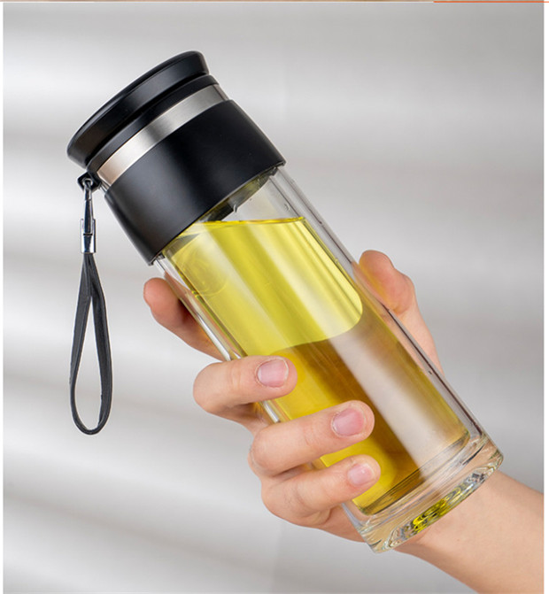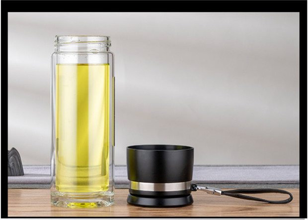 亞泰全鋼蓋雙層茶水分離男女玻璃杯