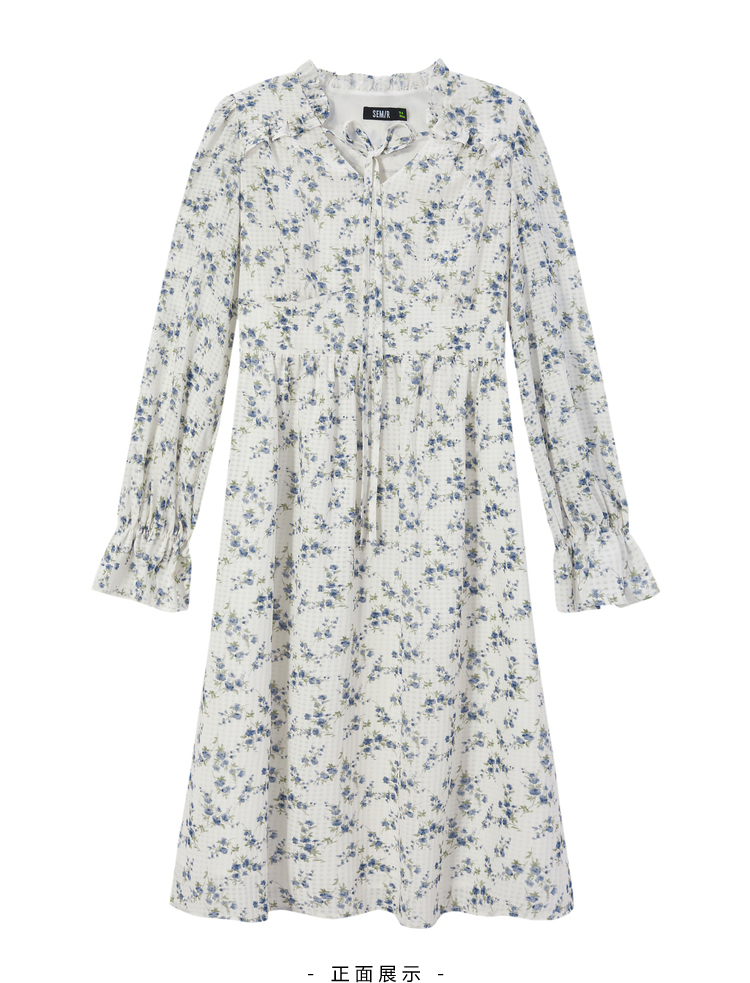 森馬連衣裙女大翻領長裙寬松2022春新款田園風法式碎花裙氣質雪紡