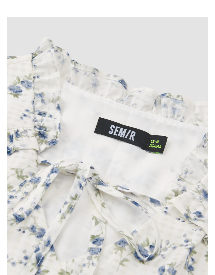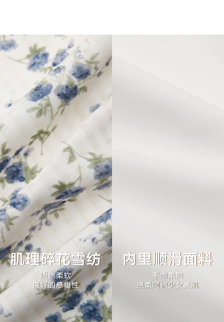 森馬連衣裙女垂感雪紡裙森系2022春新款v領木耳邊肌理碎花裙浪漫