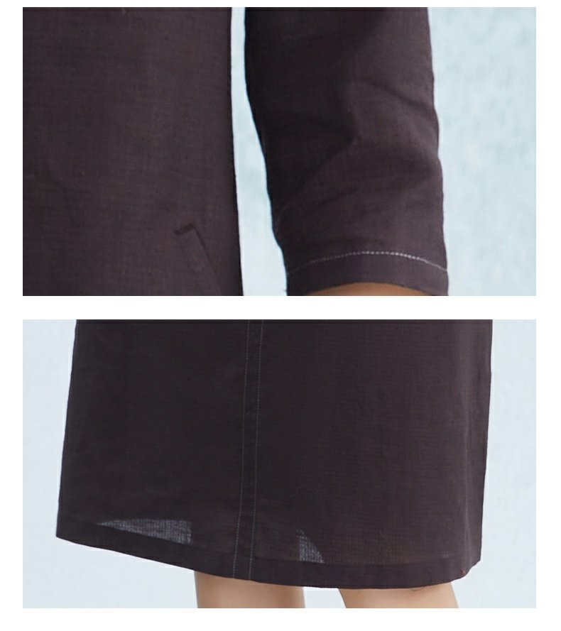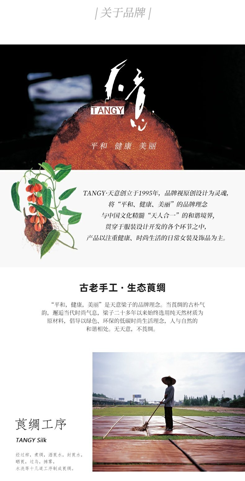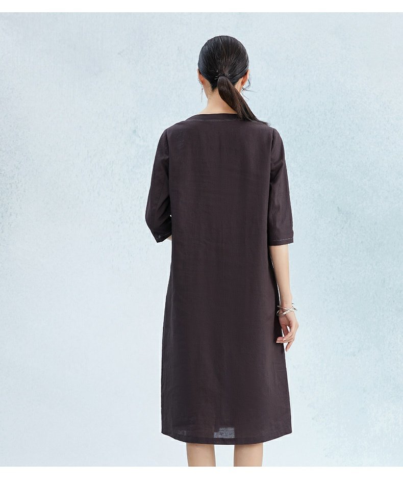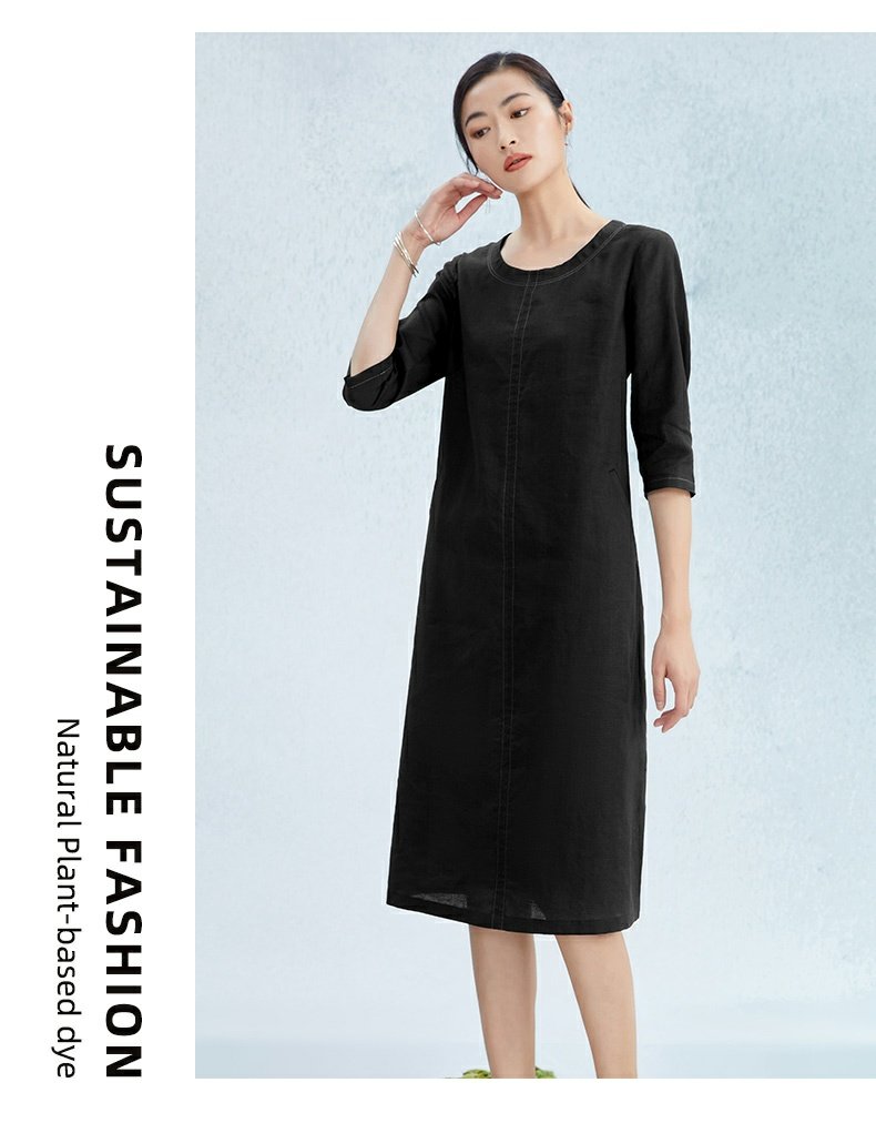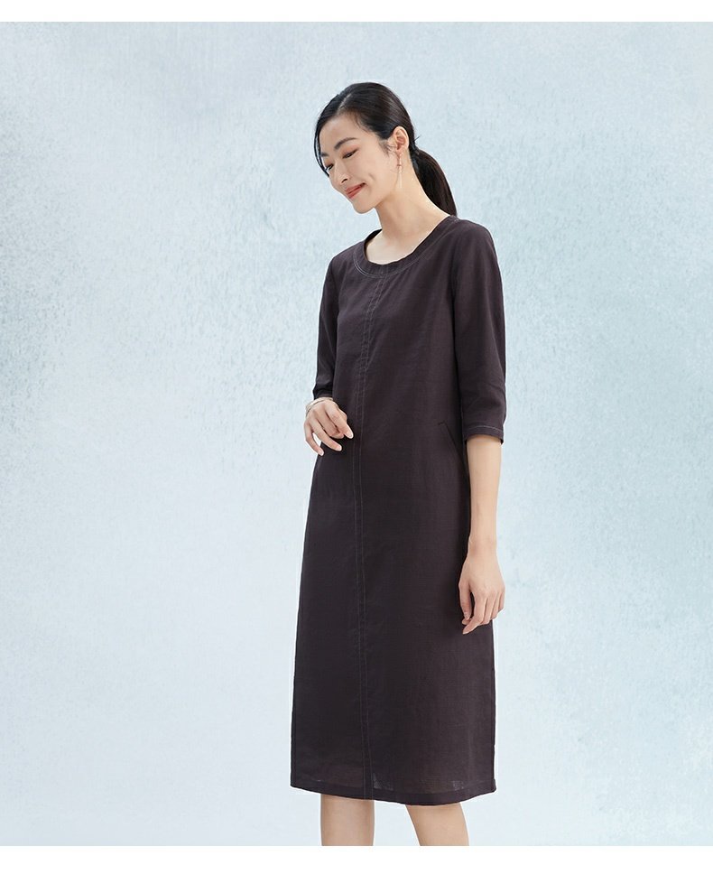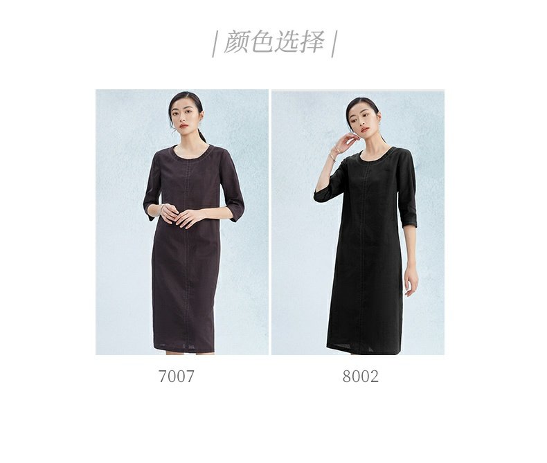 TANGY/天意春季新品民族風棉麻明線設計簡約圓領休閑連衣裙