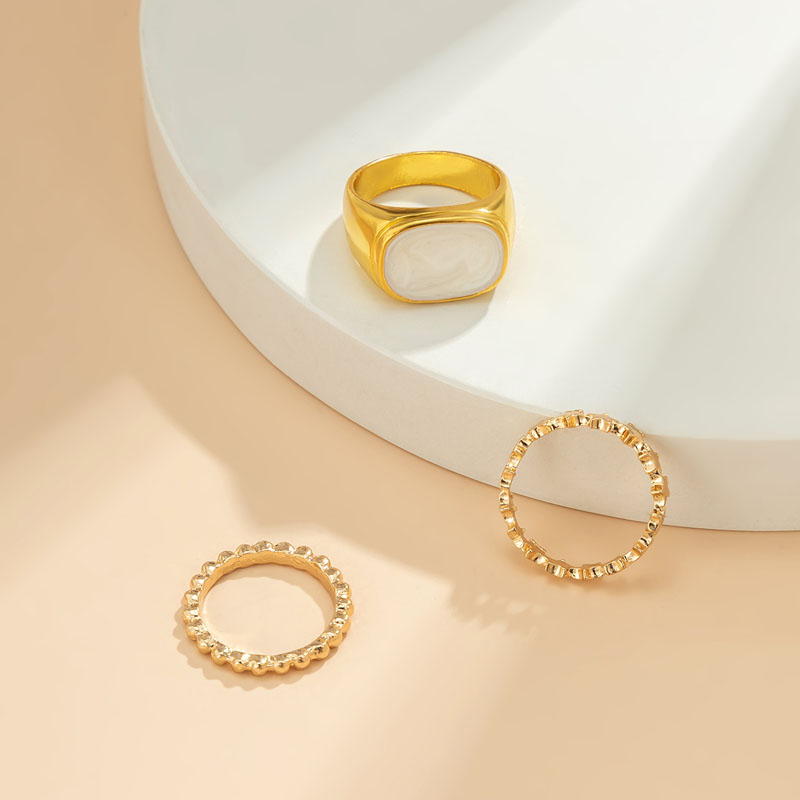 3件套五角星方塊滴油戒指套裝組合 歐美2023春季新款個性金屬指環