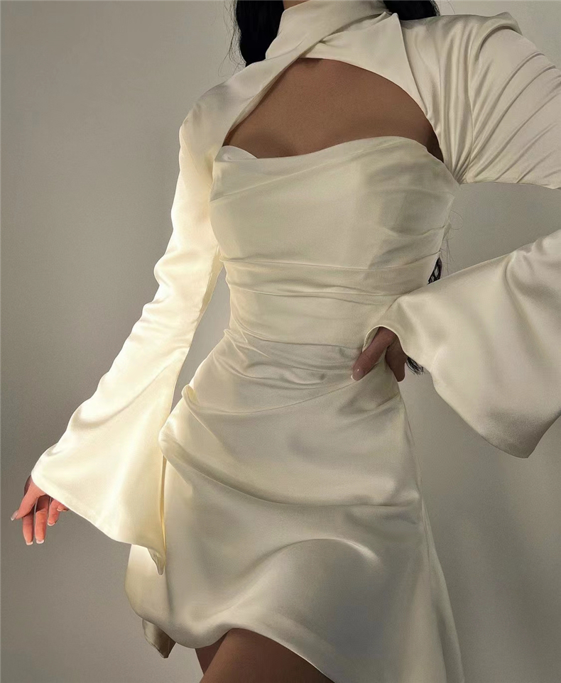 House of cb2023秋冬新款正品代購 泡泡袖長袖大領口修身連衣裙