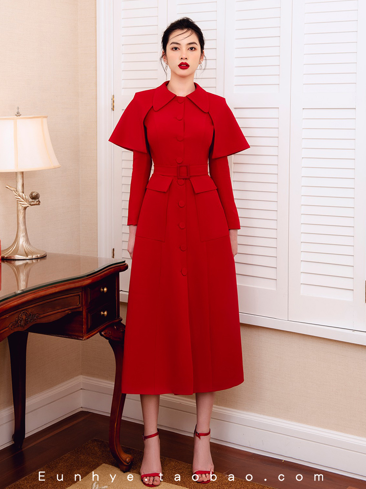 越南小眾LARMES2022新春新款復古斗篷拼接大衣結婚生日外套連衣裙