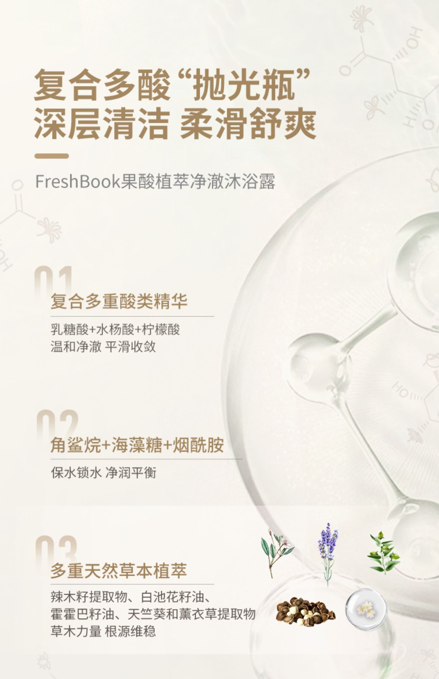 FreshBook煙酰胺果酸沐浴露氨基酸香氛保濕持久留香囤貨組合