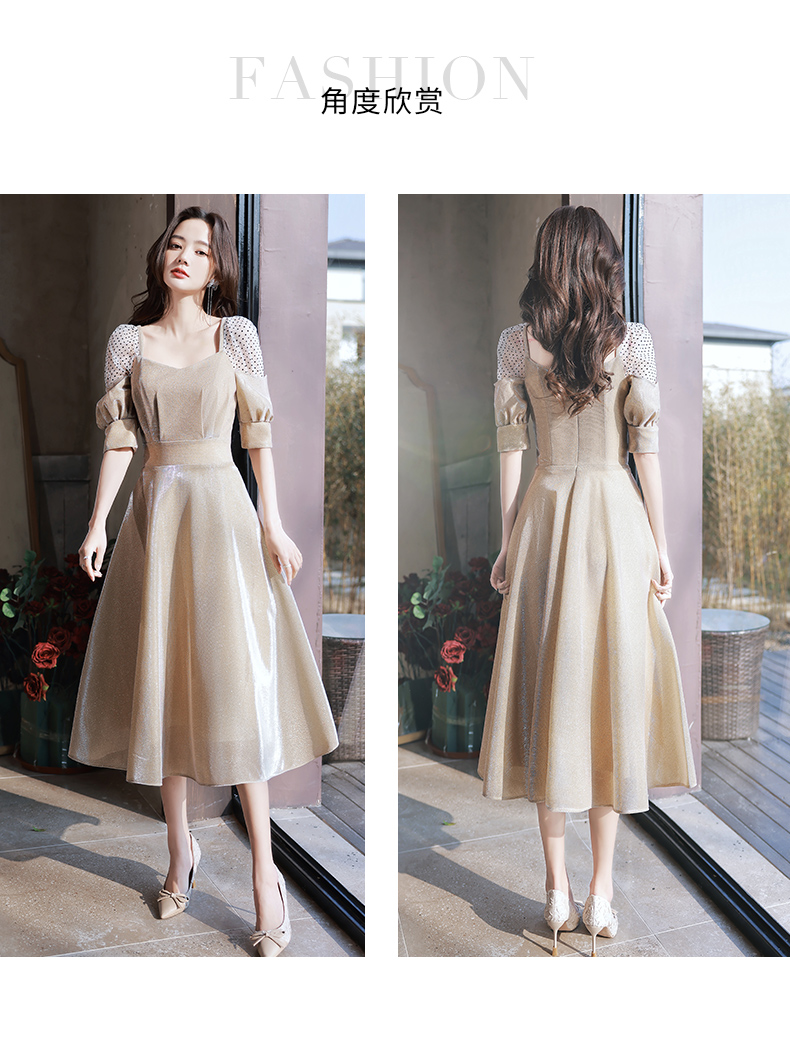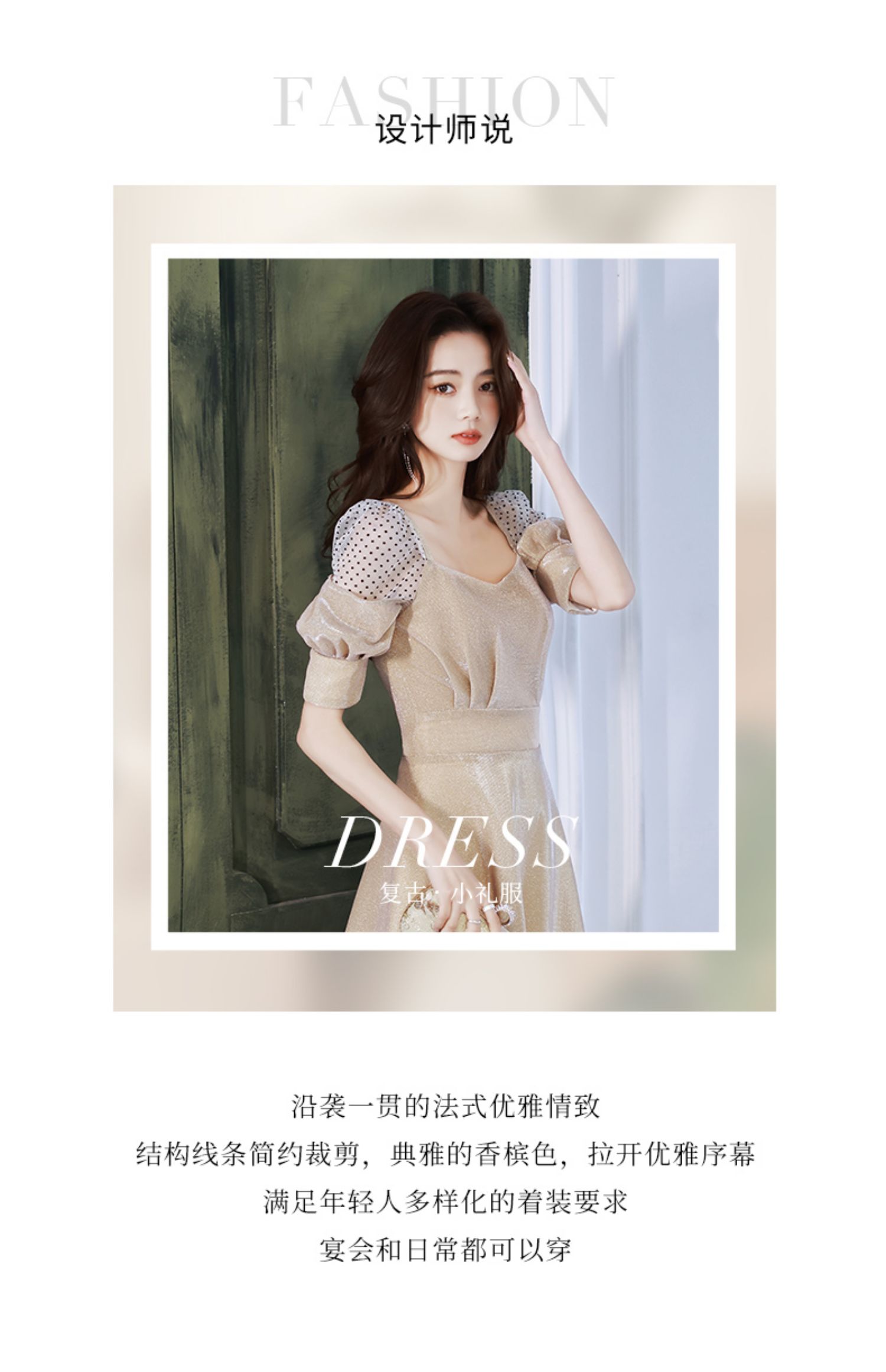 晚禮服女宴會輕奢小眾高端平時可穿高級感法式洋裝香檳訂婚連衣裙
