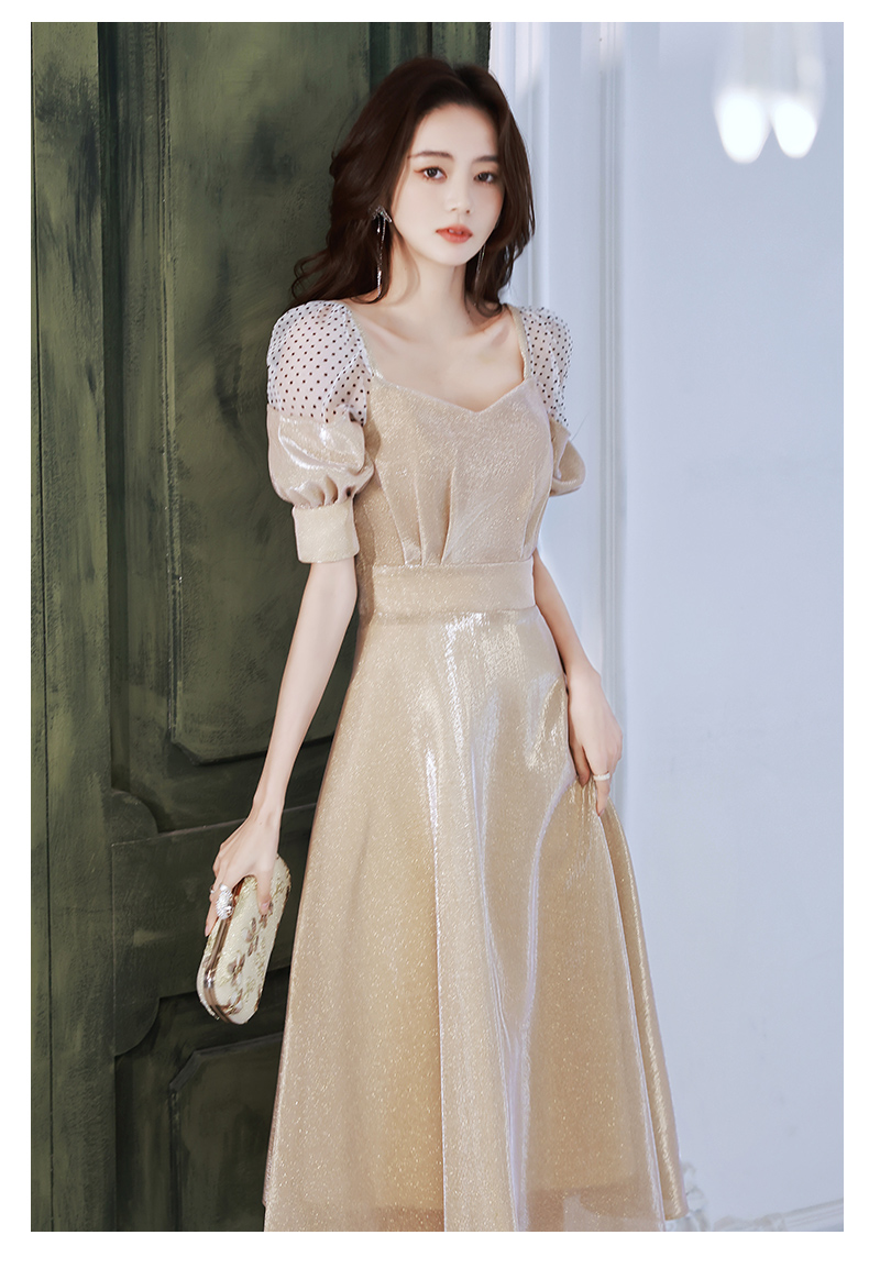 晚禮服女宴會氣質輕奢小眾高端法式洋裝高級感訂婚香檳金色連衣裙