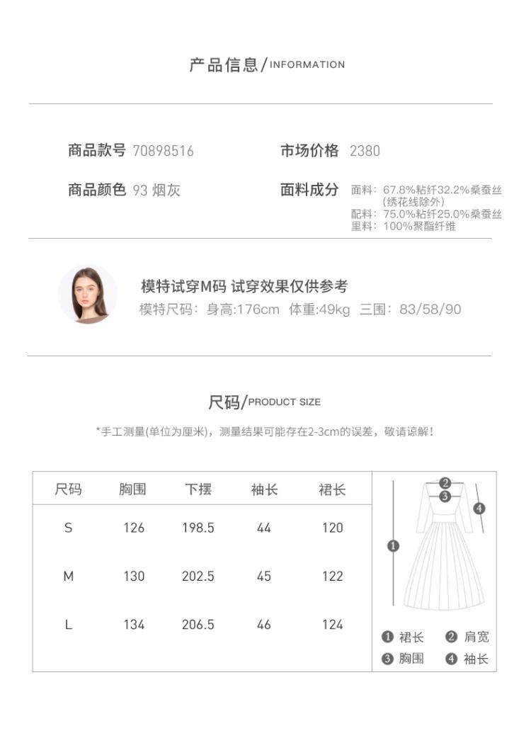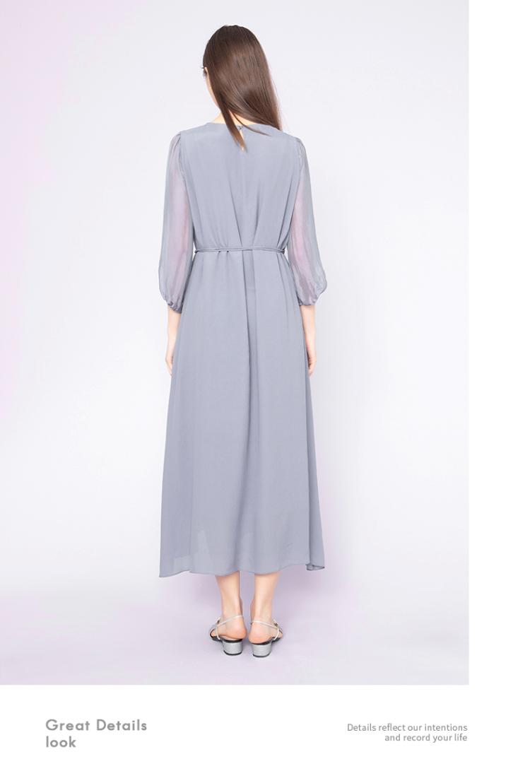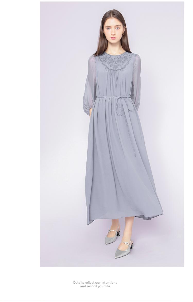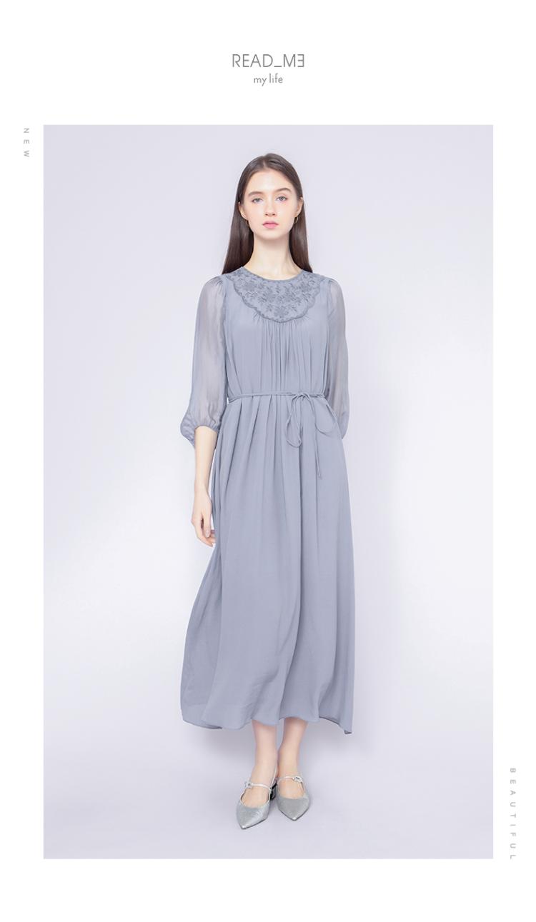 readme讀我夏女士法式繡花顯瘦復古灰長款及踝連衣裙70898516