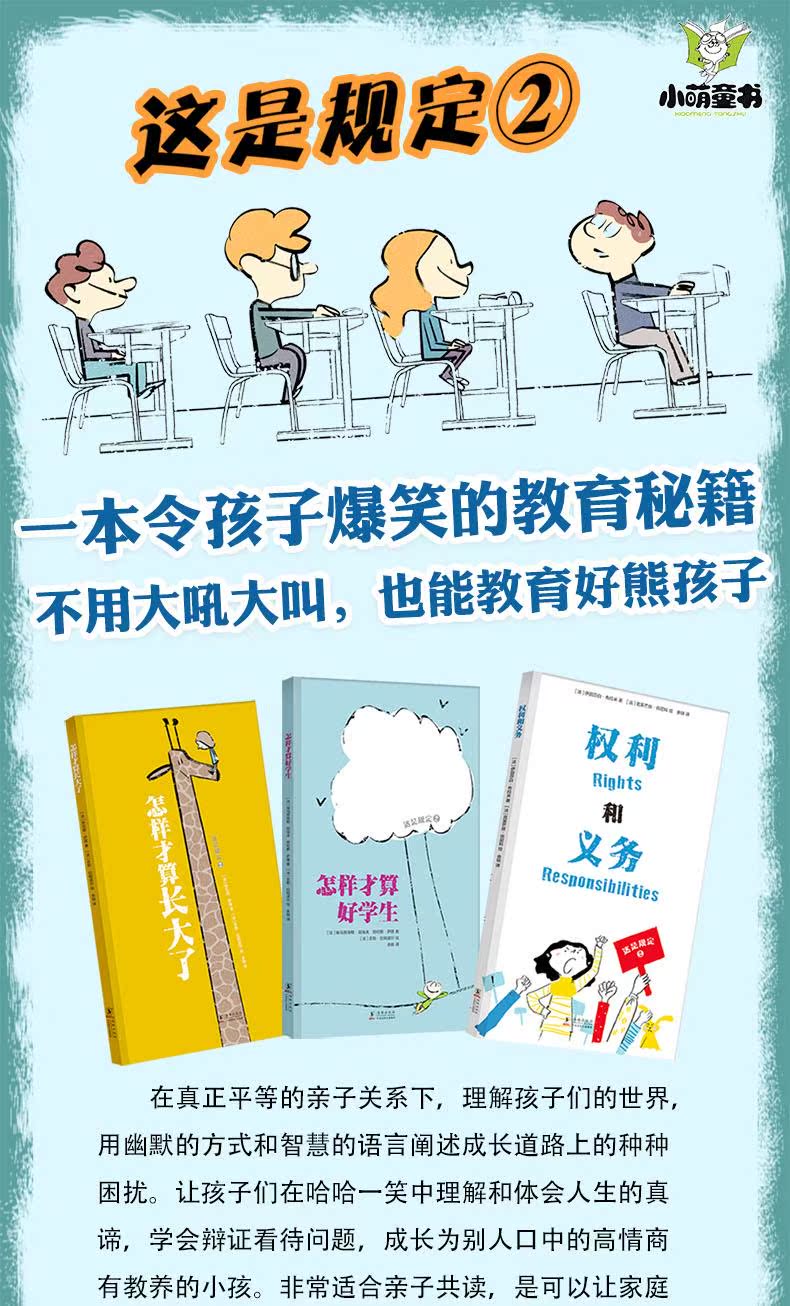 “這是規定”系列2包括《怎樣才算長大了》《怎樣才算好學生》和《權利和義務》三冊。三本書分別聚焦了“長大”“好學生”和“共情和責任”的成長主題,是一部令孩子爆笑、令家長豁然開朗的教育秘籍。
