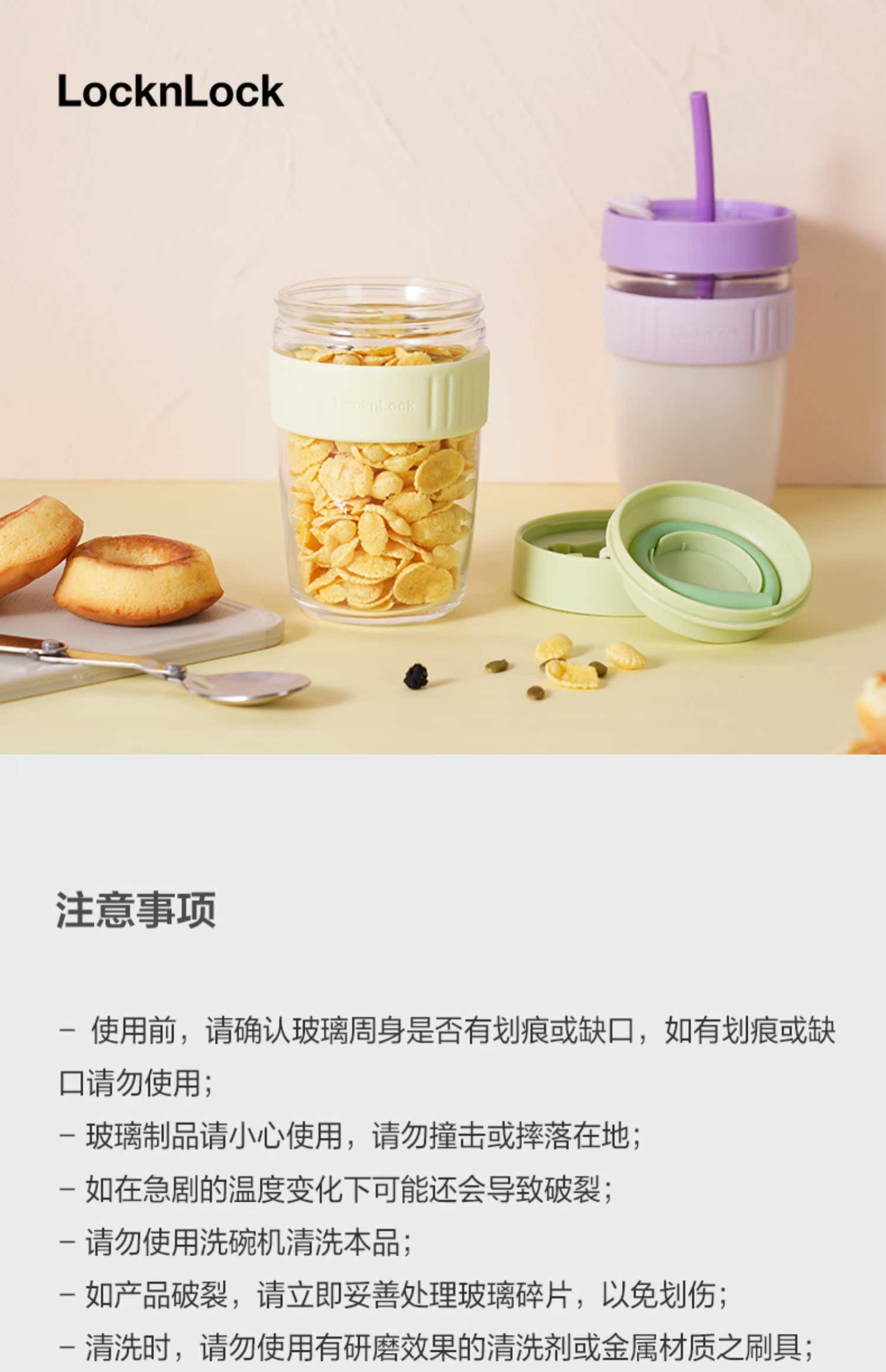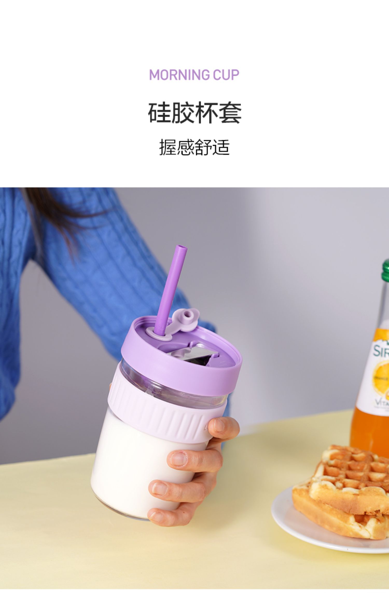 樂扣樂扣玻璃水杯早餐杯女可愛高顏值不生氣帶吸管杯子兒童牛奶杯