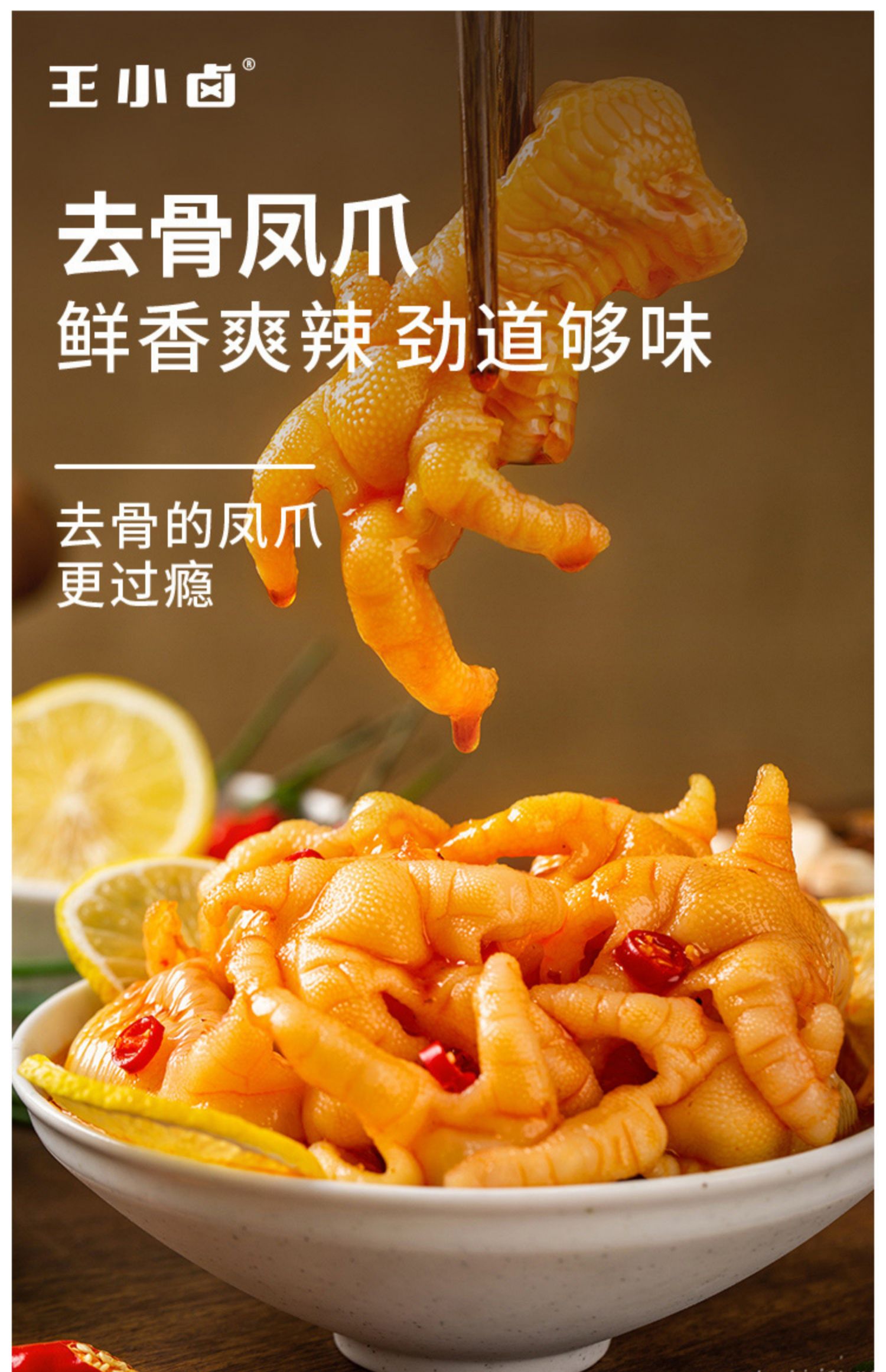 王小鹵去骨鳳爪無骨雞爪檸檬酸辣脫骨鳳爪鹵味即食休閑零食品小吃