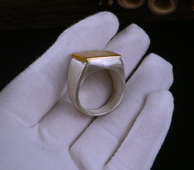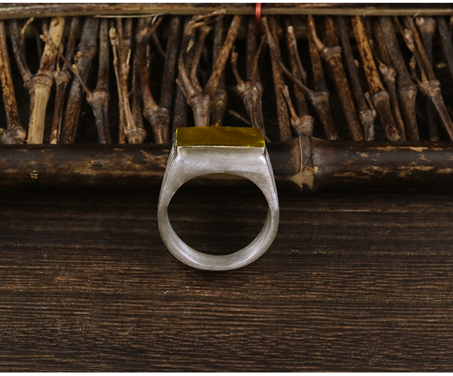 伊瓦嵐 Stop Light co高山隆平面貼金方戒指925純銀男女厚重機車
