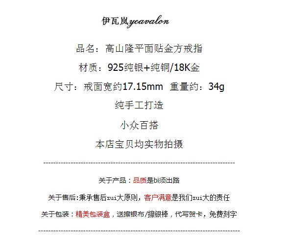 39¥ CZ0001 Pl39WdHjaWT¥ https://m.tb.cn/h.5jCMoEj 伊瓦嵐 Stop Light co高山隆平面貼金方戒指925純銀男女厚重機車 --------------------- 伊瓦嵐 Stop Light co高山隆平面貼金方戒指925純銀男女厚重機車 --------------------- 【原售價】580元 【優惠券】40元 【券后價】540元。