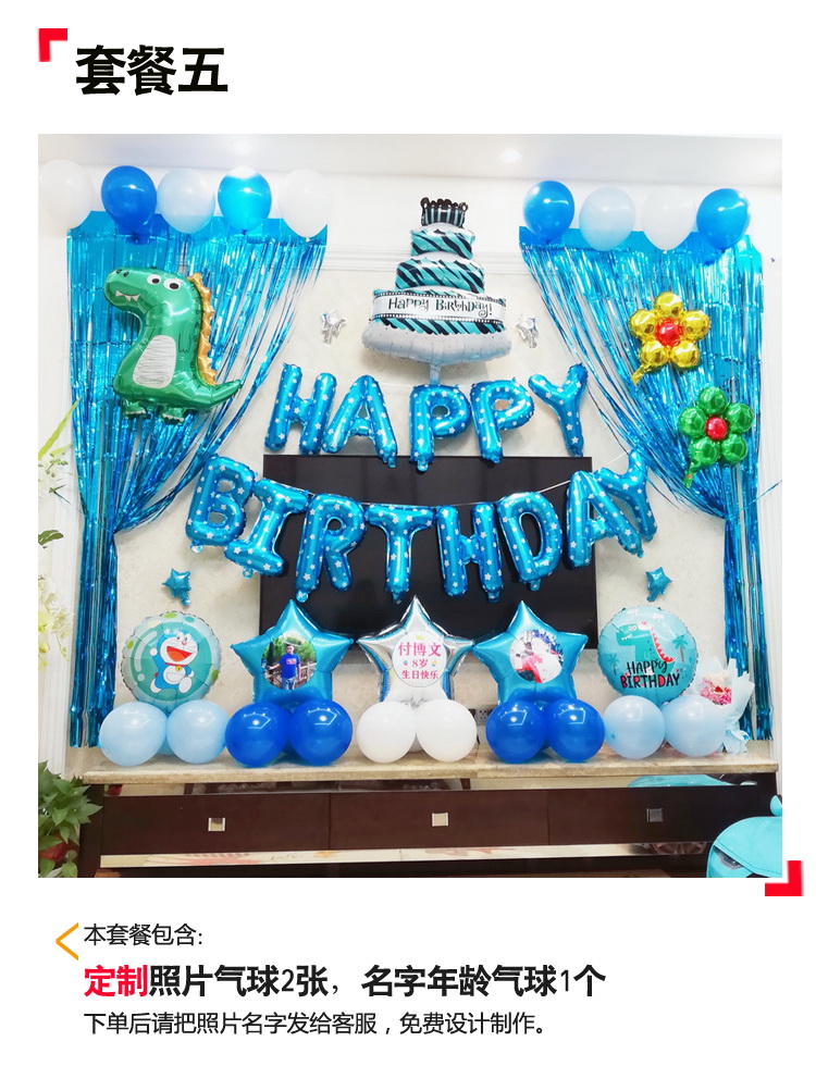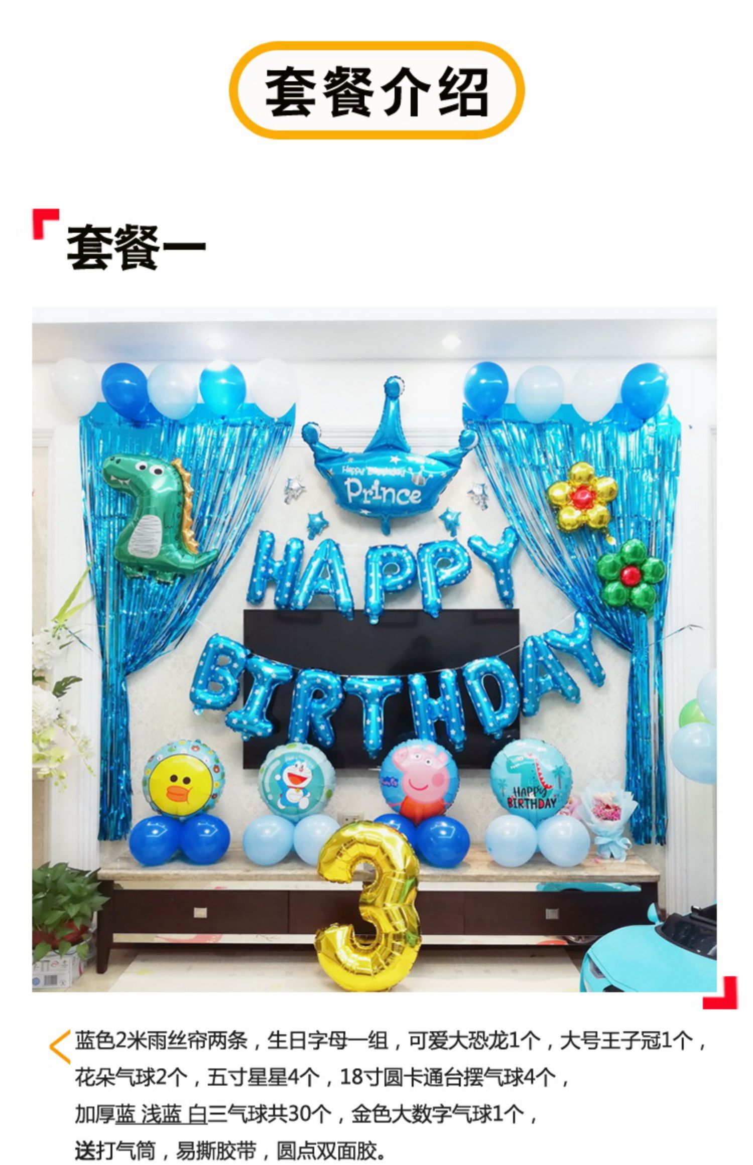 男孩生日布置客廳電視背景墻卡通驚喜周歲兒童藍色雨絲簾氣球裝飾