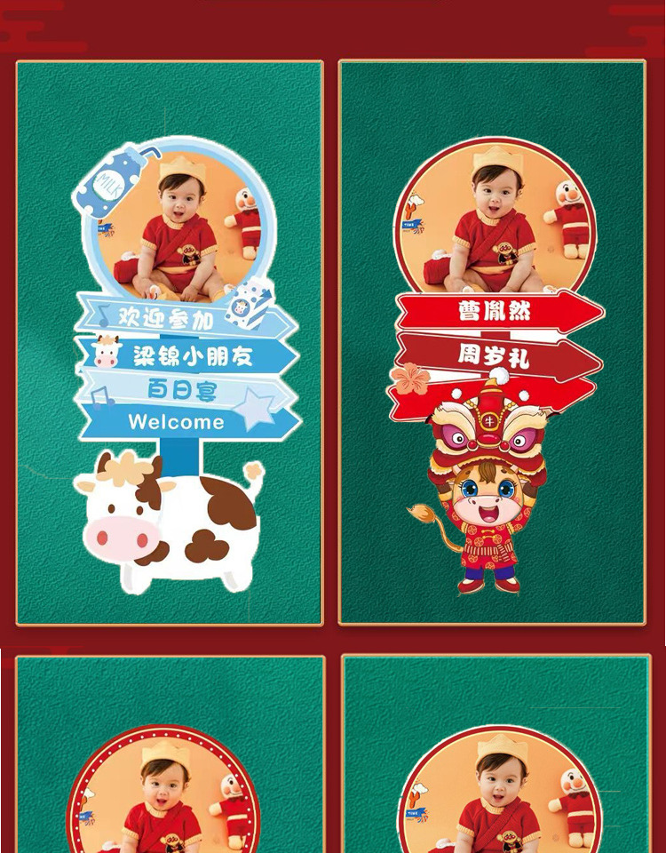 滿月百天宴迎賓牌布置男女寶寶一周歲生日布置裝飾場景背景墻kt板