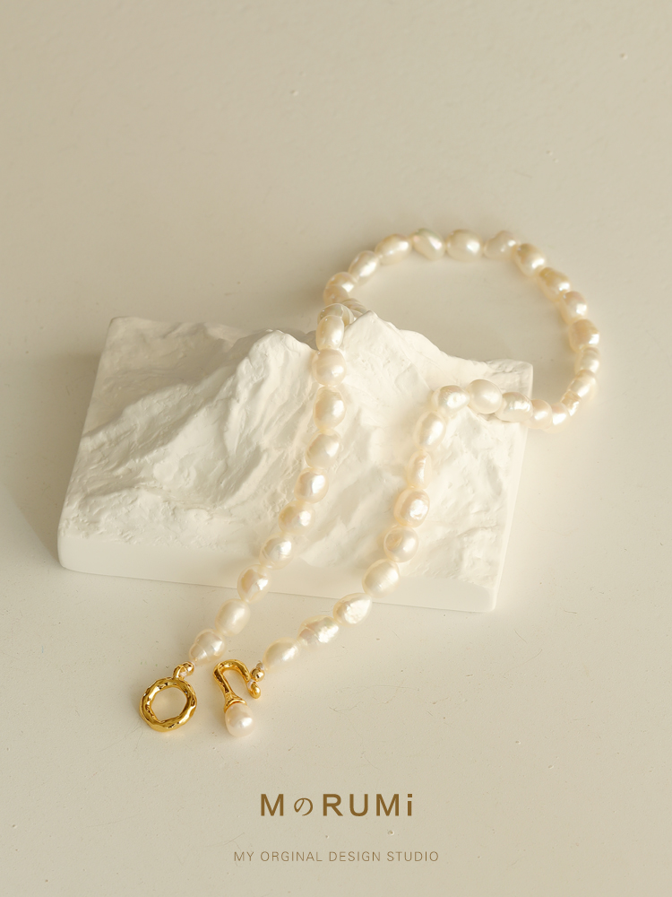 「塞納河邊」優雅氣質復古巴洛克珍珠項鏈不規則小眾精致金屬項鏈