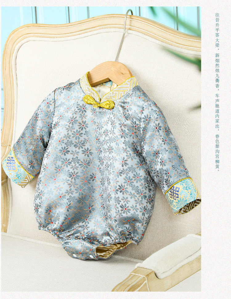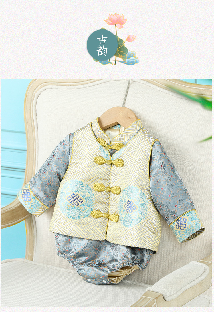 法國MNGK嬰兒漢服秋裝中國風長袖爬爬服唐裝滿月百天周歲寶寶禮服
