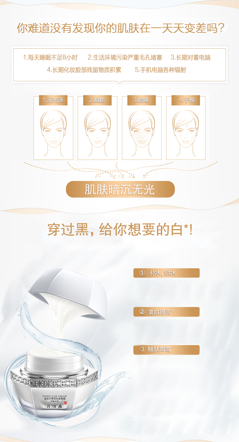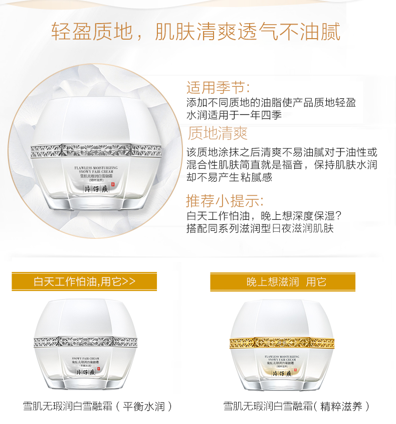 片仔癀牌無瑕潤白雪融霜50g女面霜