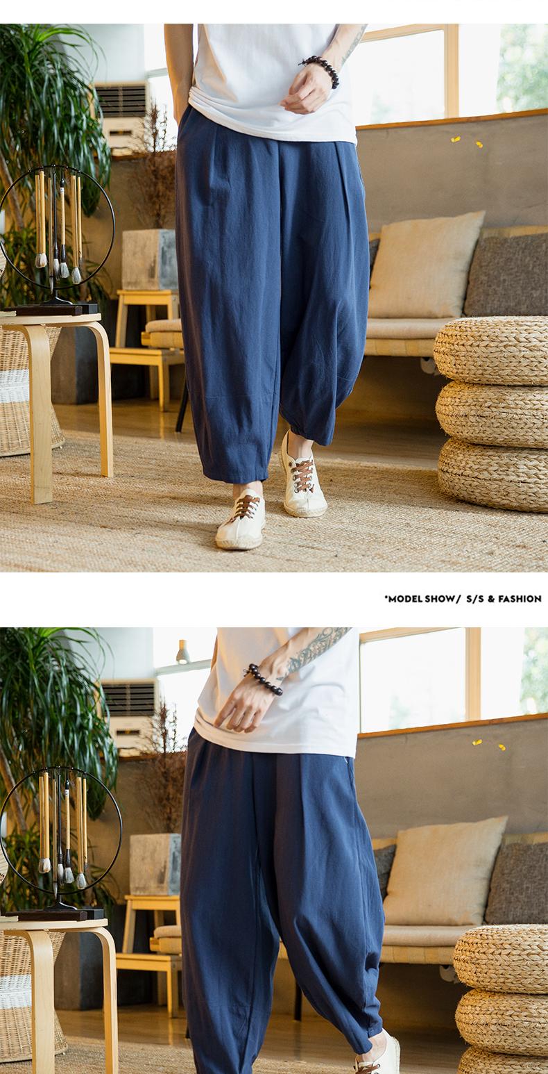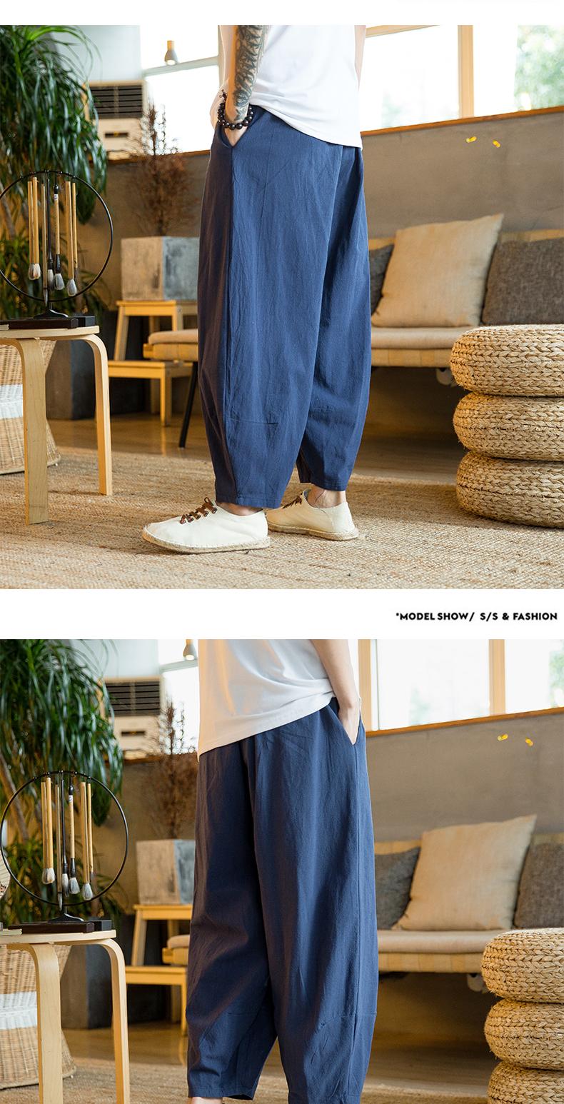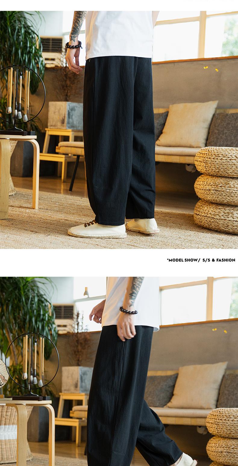 夏季中國風亞麻休閑闊腿寬松子男褲