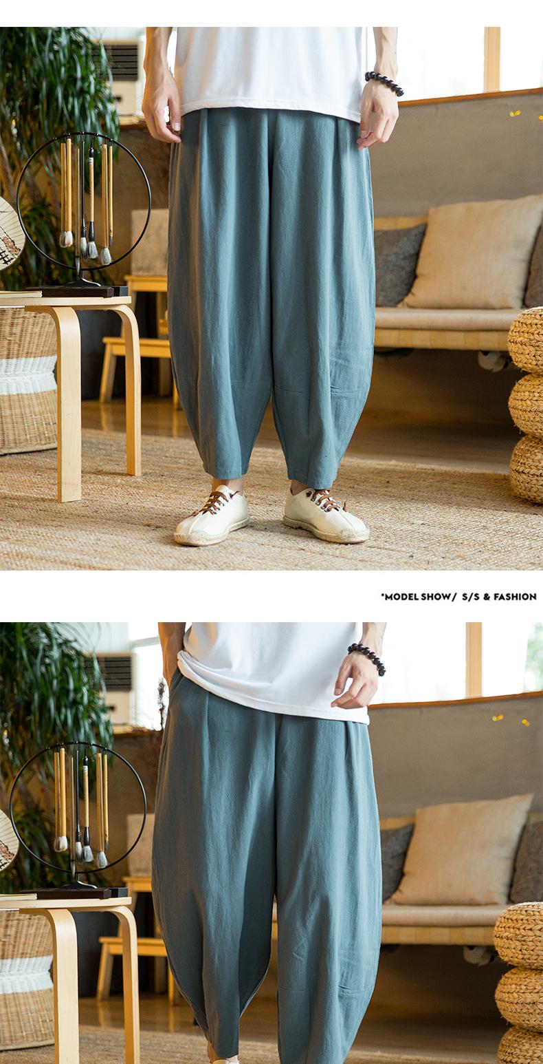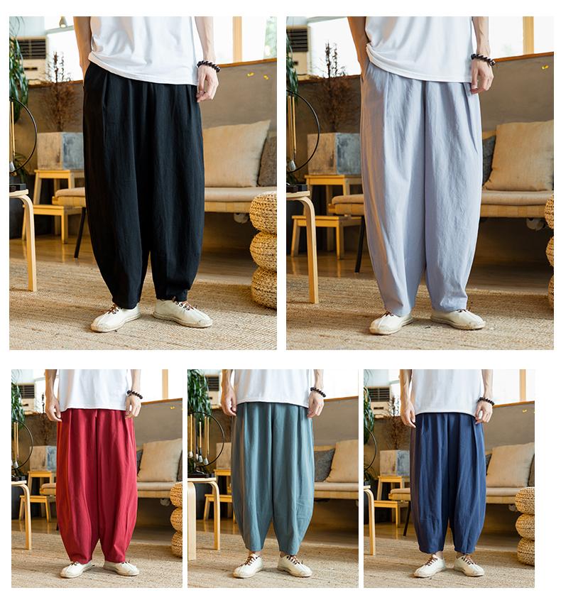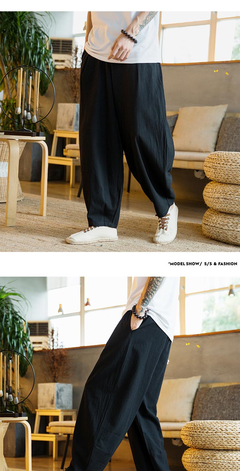 男士亞麻褲春秋季褲子中國風男裝唐裝休閑褲胖子哈倫褲寬松闊腿褲
