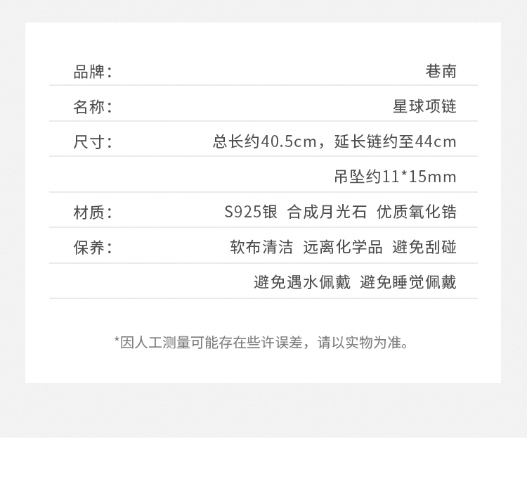 【巷南】925純銀星球女輕奢夏毛衣鏈