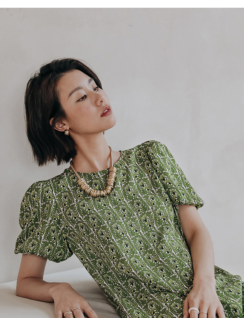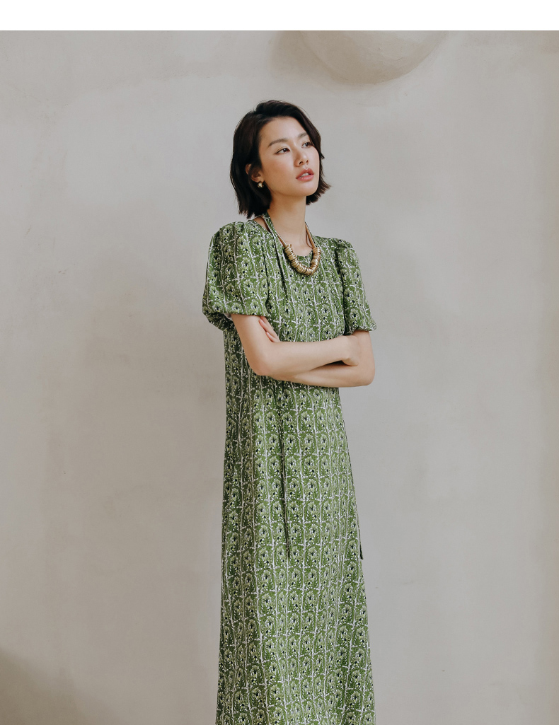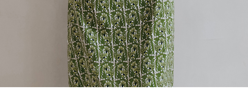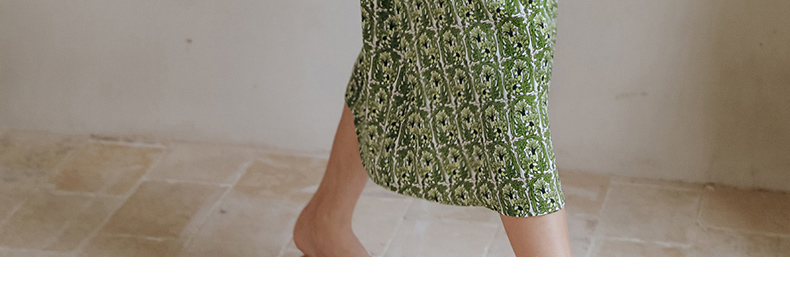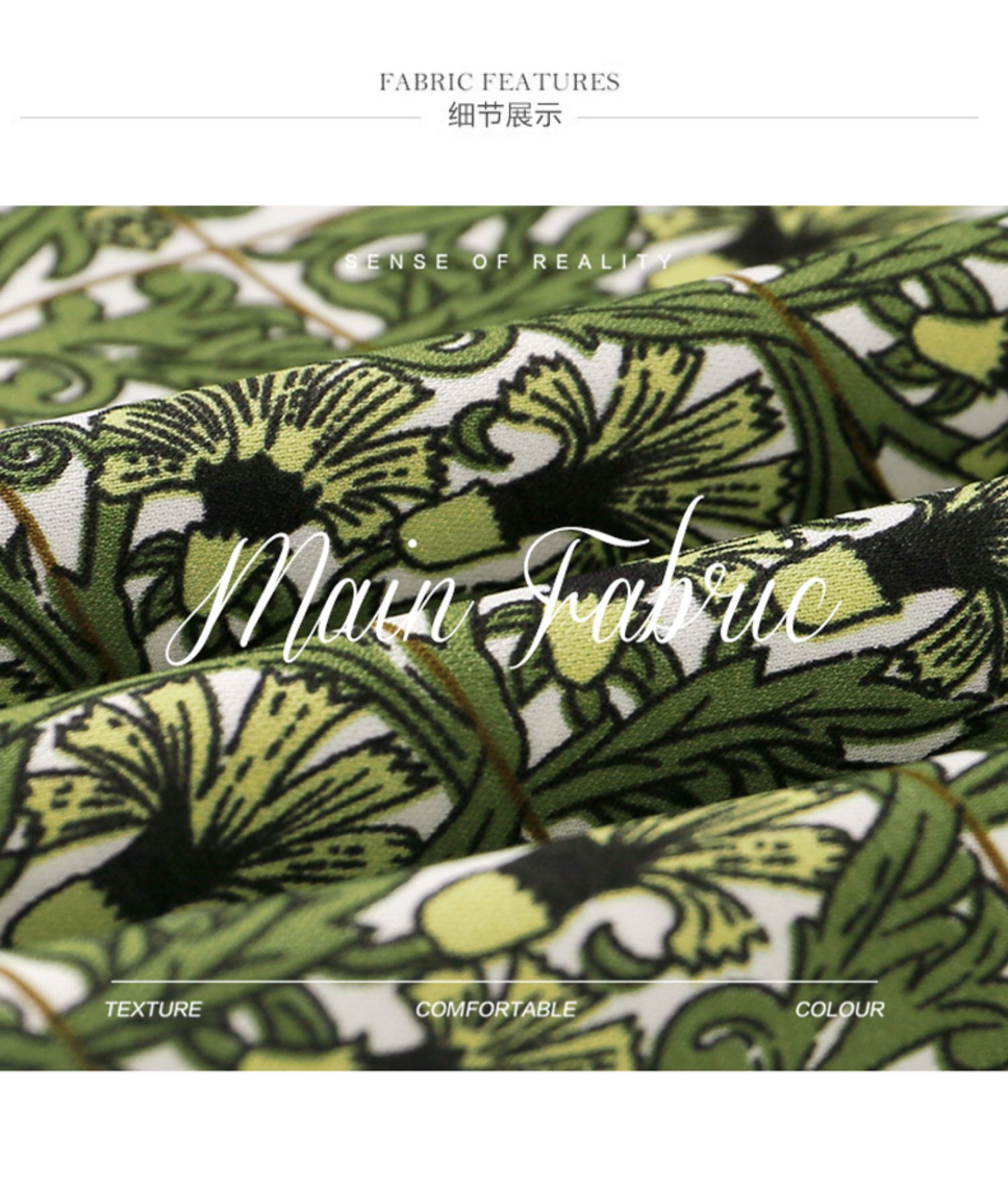 彌古法式復古綠色碎花連衣裙高級感茶歇長裙女夏顯瘦直筒海邊裙子