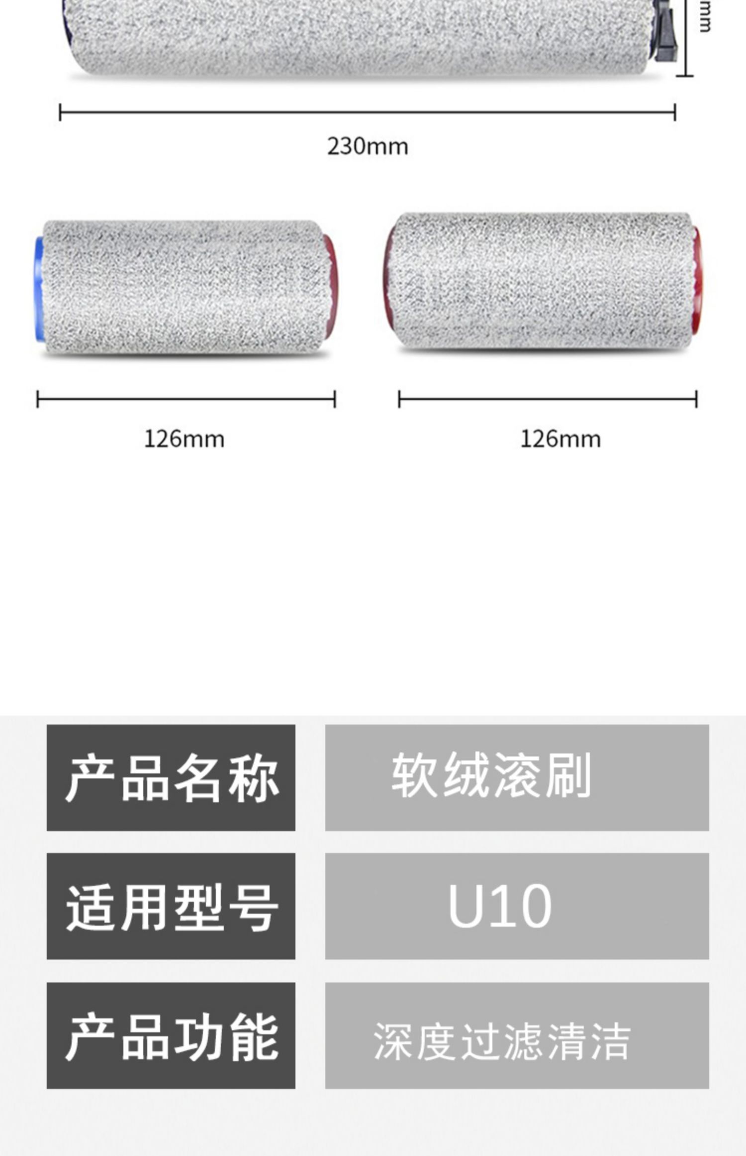石頭U10洗地機配件智能雙滾刷專用長短滾筒刷清潔液洗劑濾網濾芯