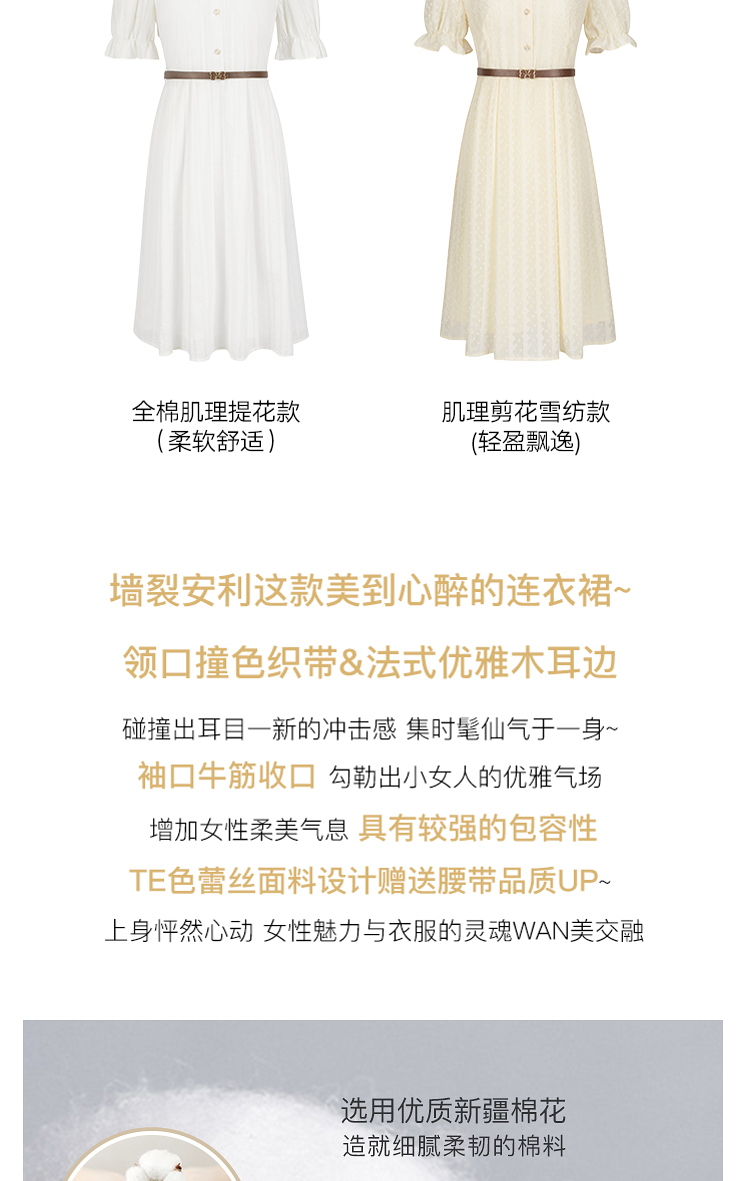 18¥ CZ3457 45WVdANr7nV¥ https://m.tb.cn/h.5ftCPEO 100%純棉白色蕾絲連衣裙女2023年夏裝新款設計感高級流行法式裙子 --------------------- 100%純棉白色蕾絲連衣裙女2023年夏裝新款設計感高級流行法式裙子 --------------------- 1.領口撞色織帶設計,領口木耳邊細節 --------------------- 【原售價】559.00元 【現售價】539元。