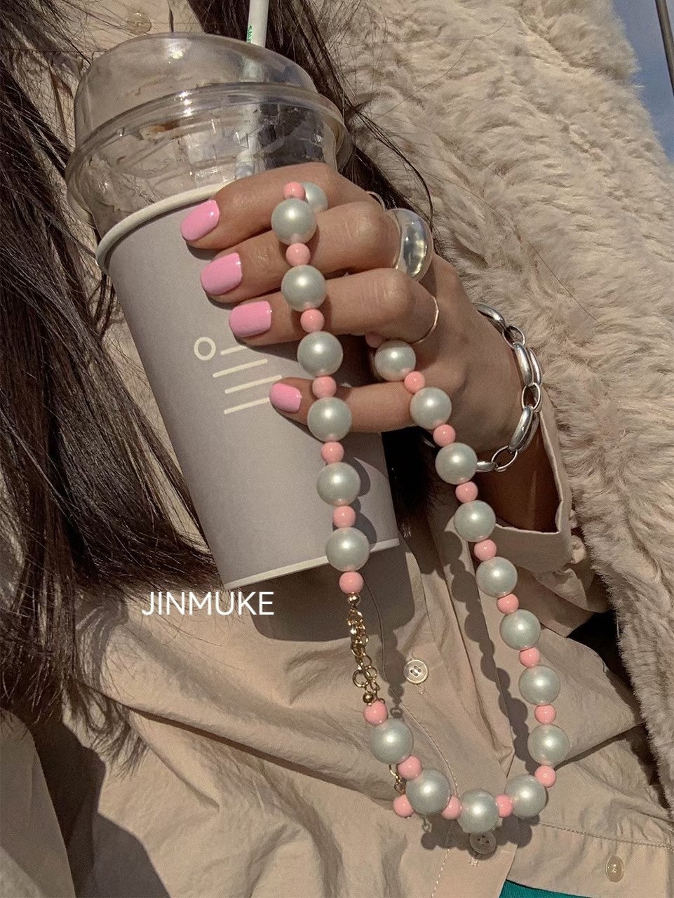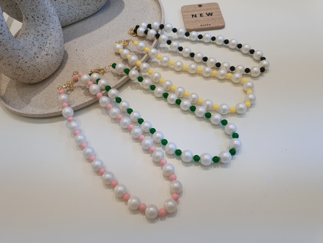 JINMUKE飾品韓國進口首飾品彩色串珠手工項鏈鎖骨鏈夏新品2023