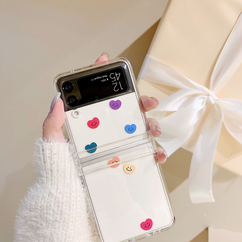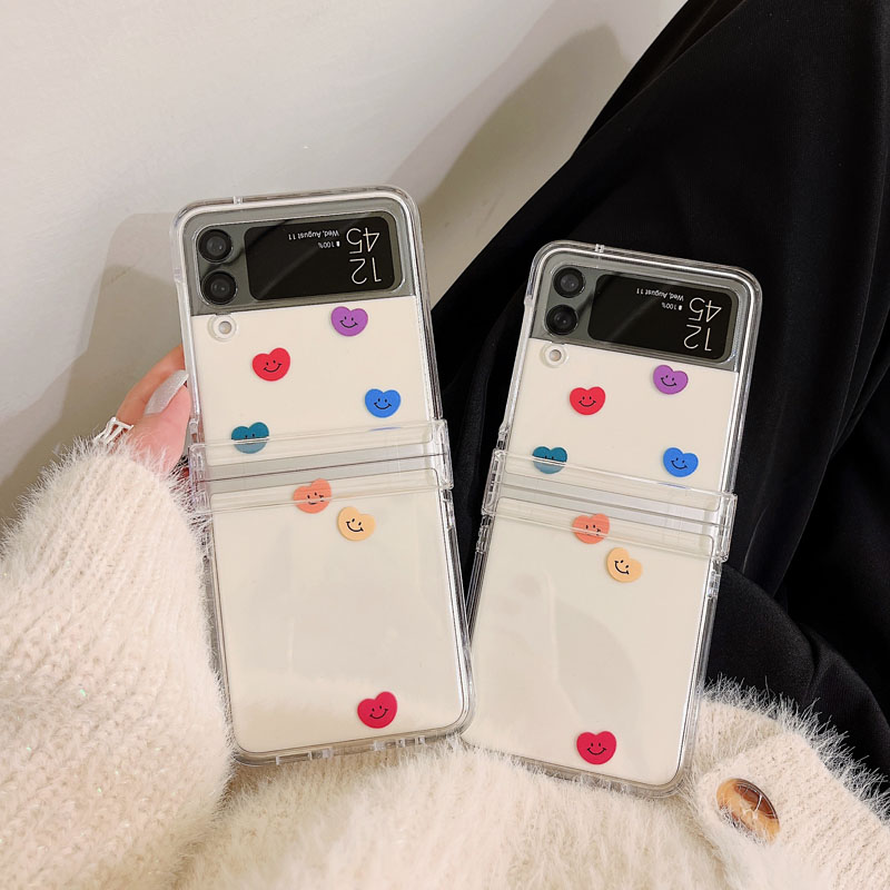 適用三星zflip5手機殼INS風笑臉小愛心波點側邊全包硬殼防摔保護套新款zflip 3殼折疊屏簡約卡通女透明flip4