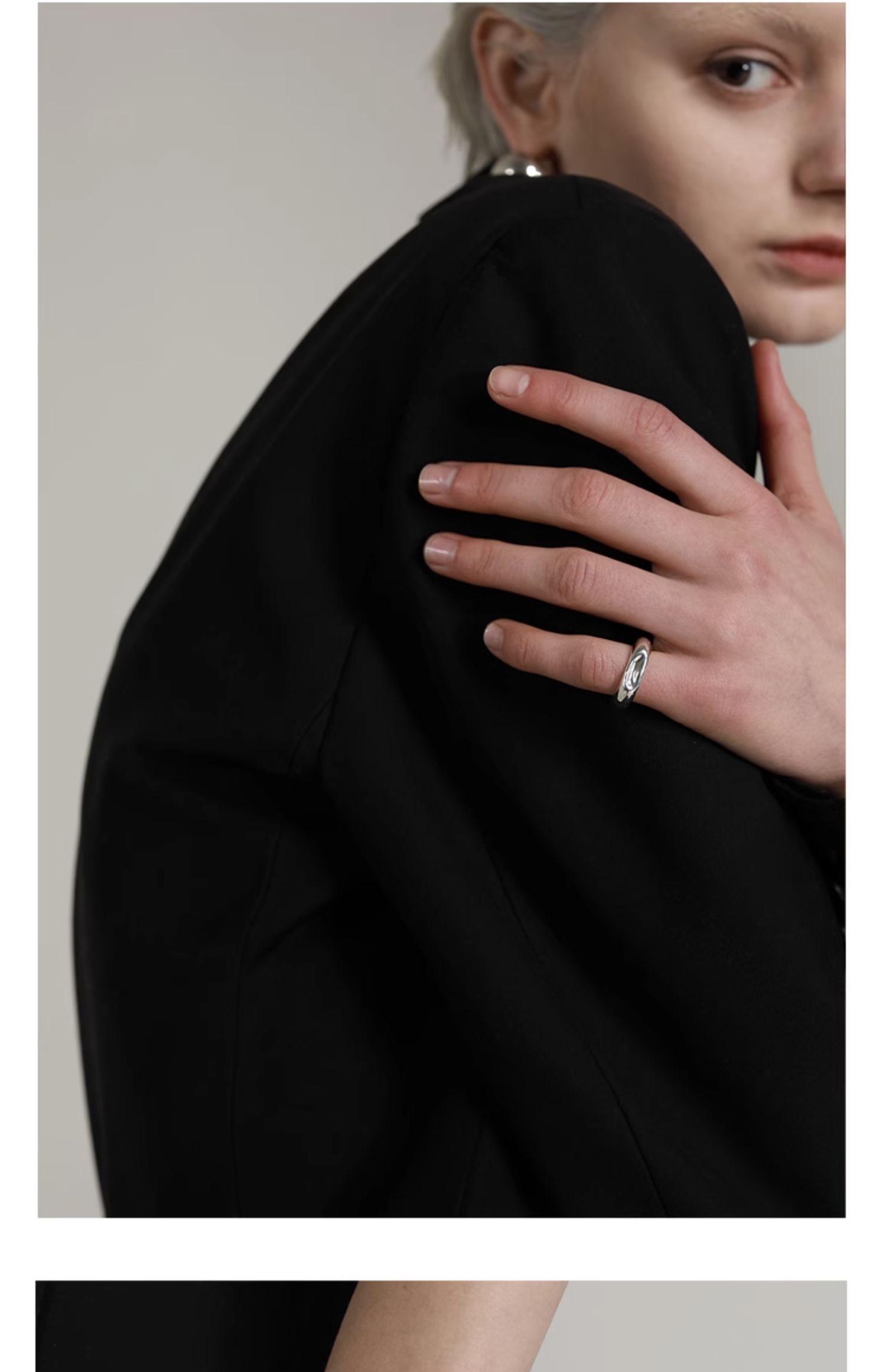 ewest藝未2023新款素面925銀戒指女小眾設計感紐面食指中指戒尾戒