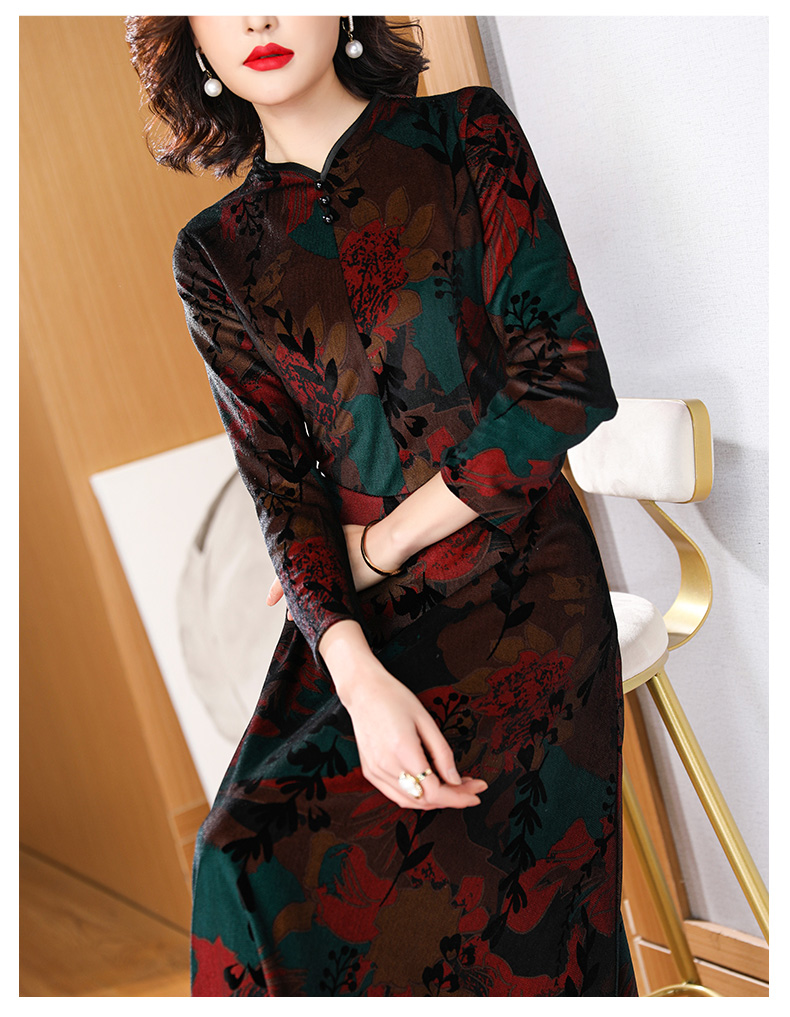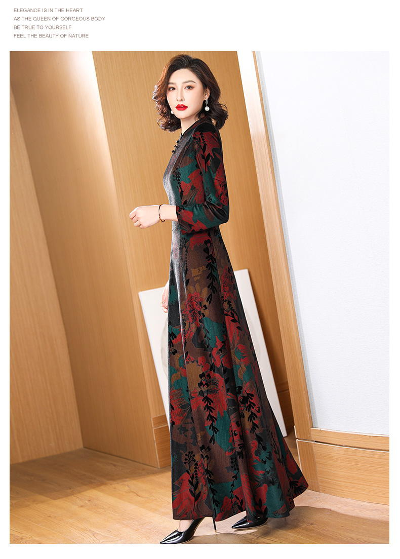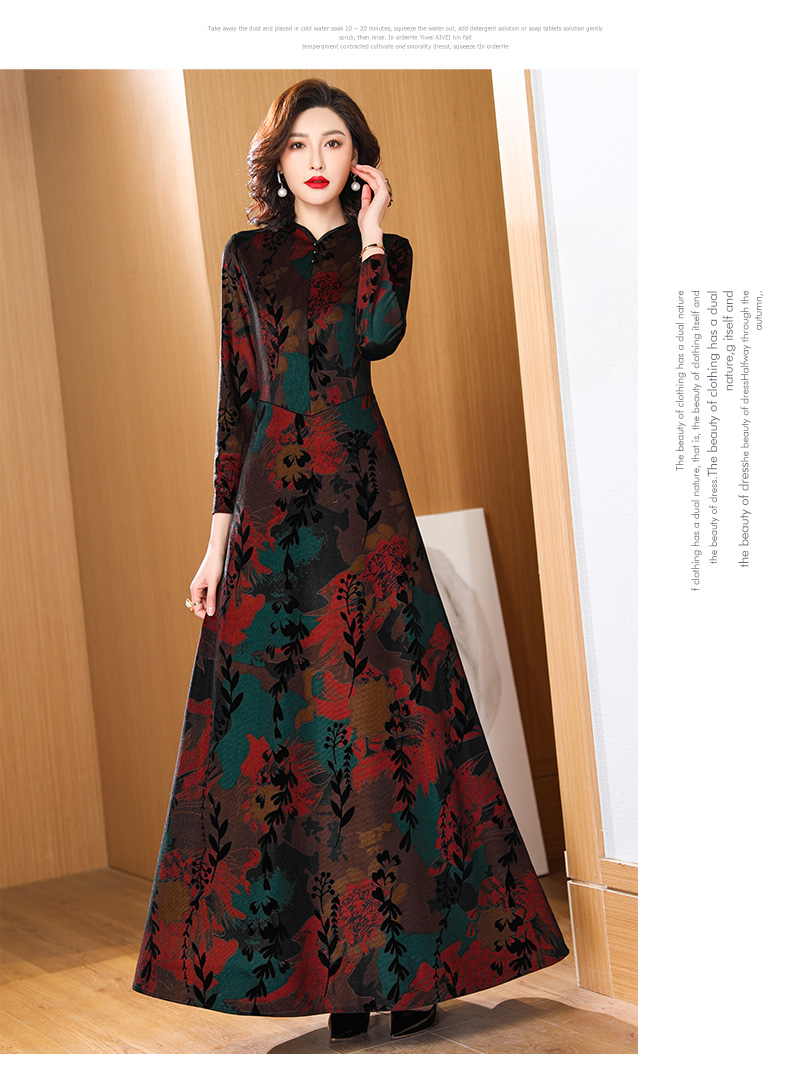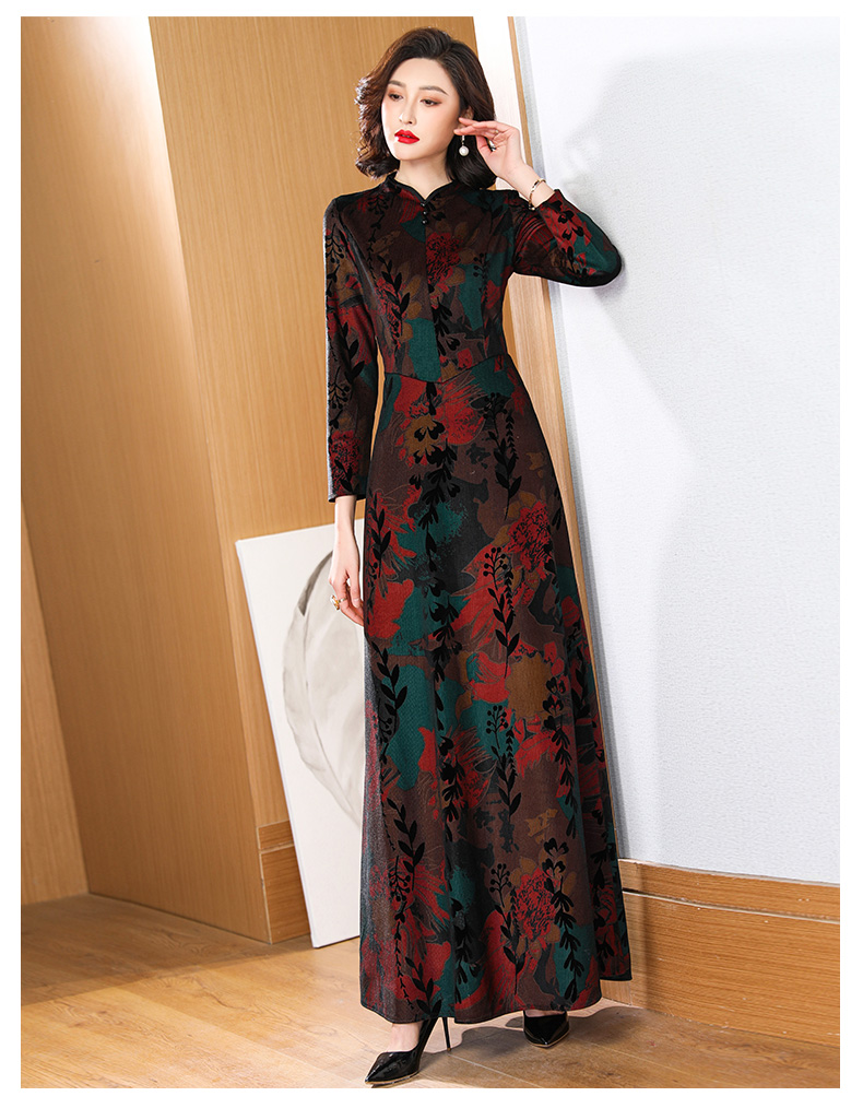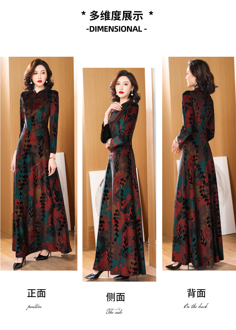 高貴典雅氣質媽媽加絨加厚連衣旗袍