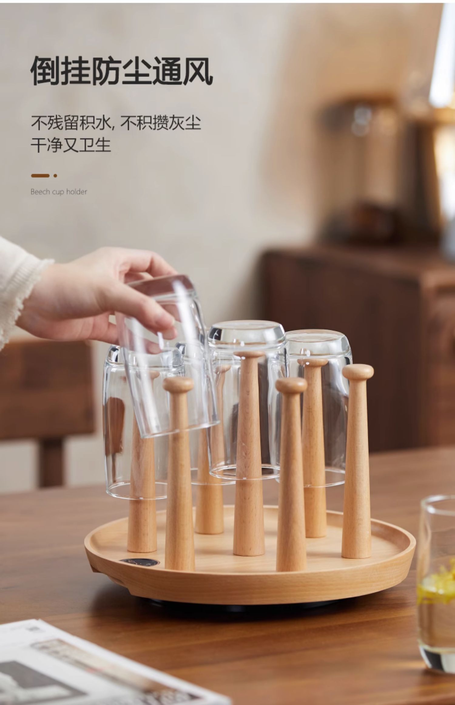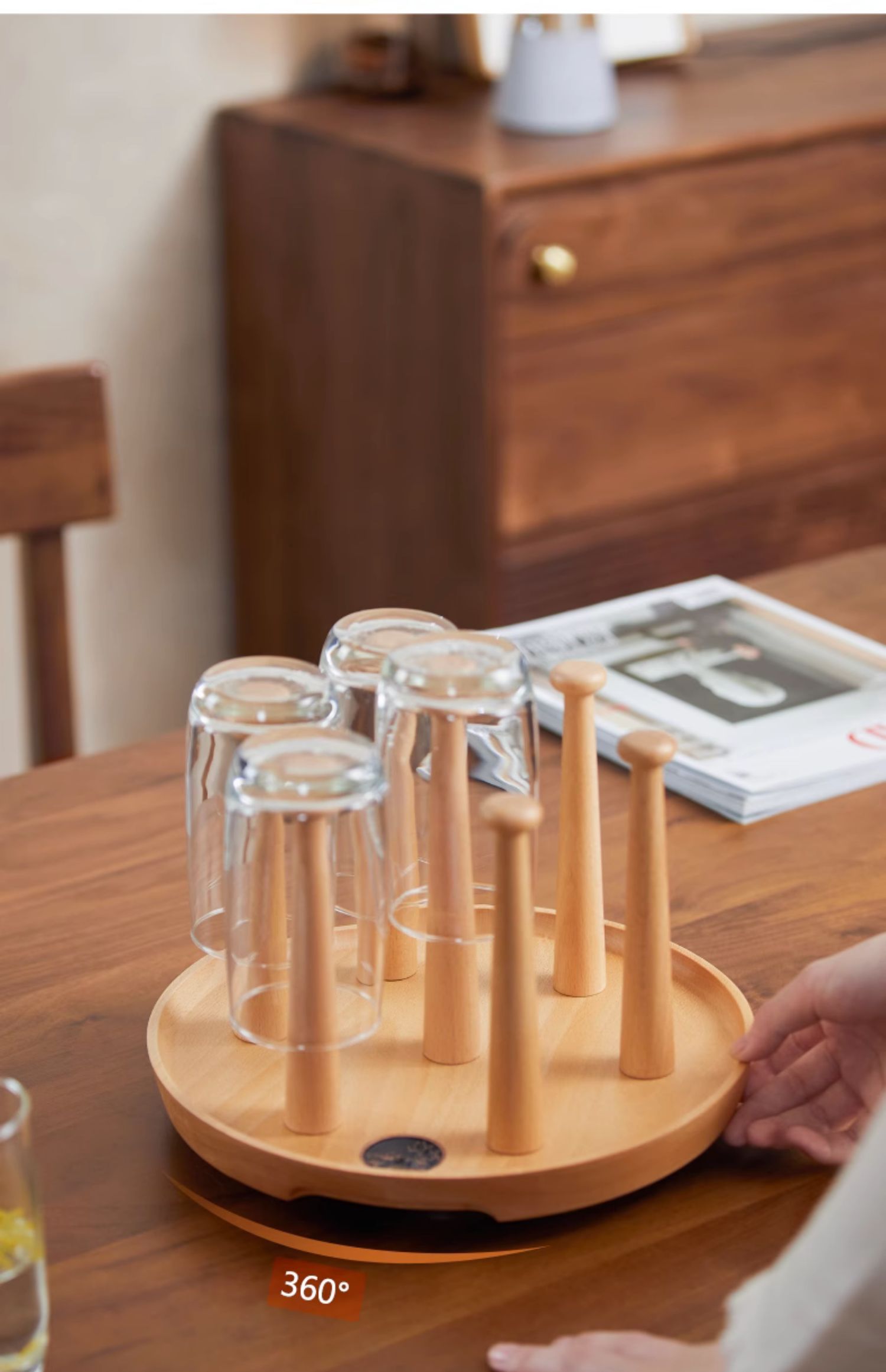綠朵實木桌面旋轉玻璃杯倒掛置物架