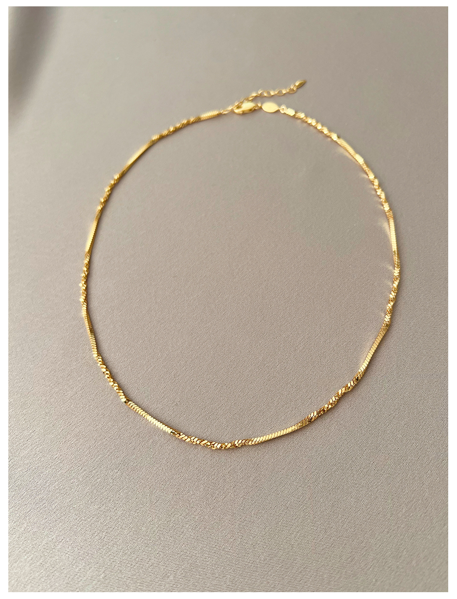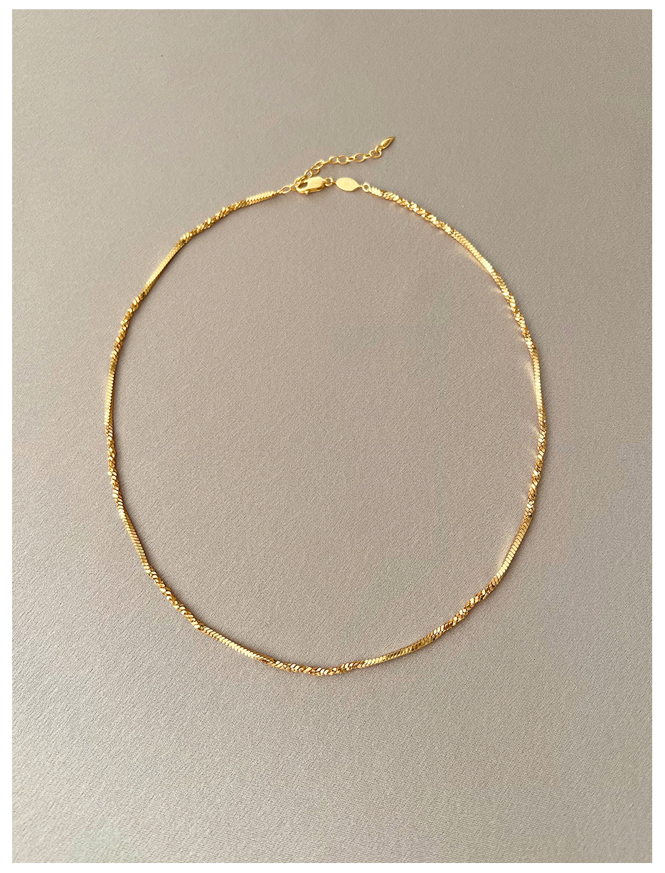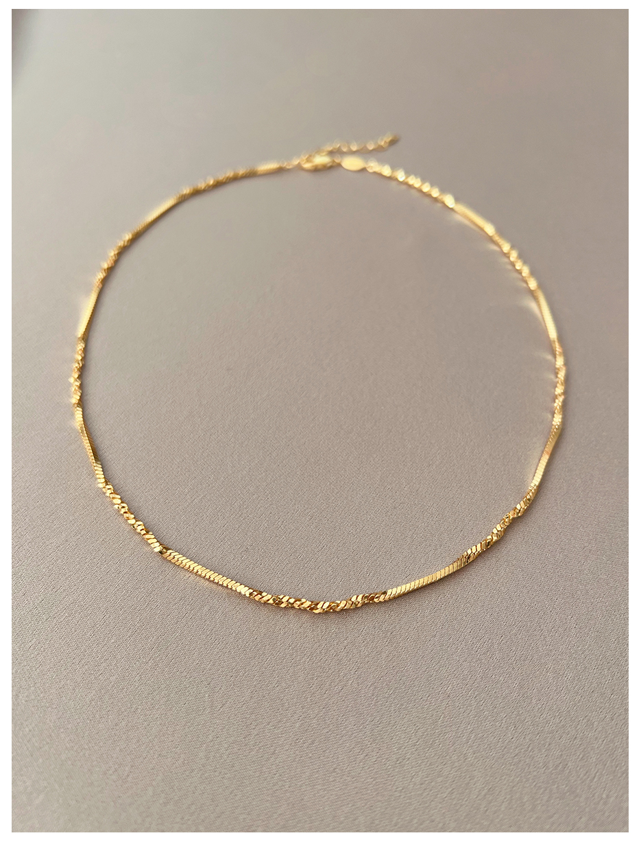 CHICWANG日韓S925純銀厚鍍18K金色滿天星閃光波光粼粼蛇骨鏈項鏈