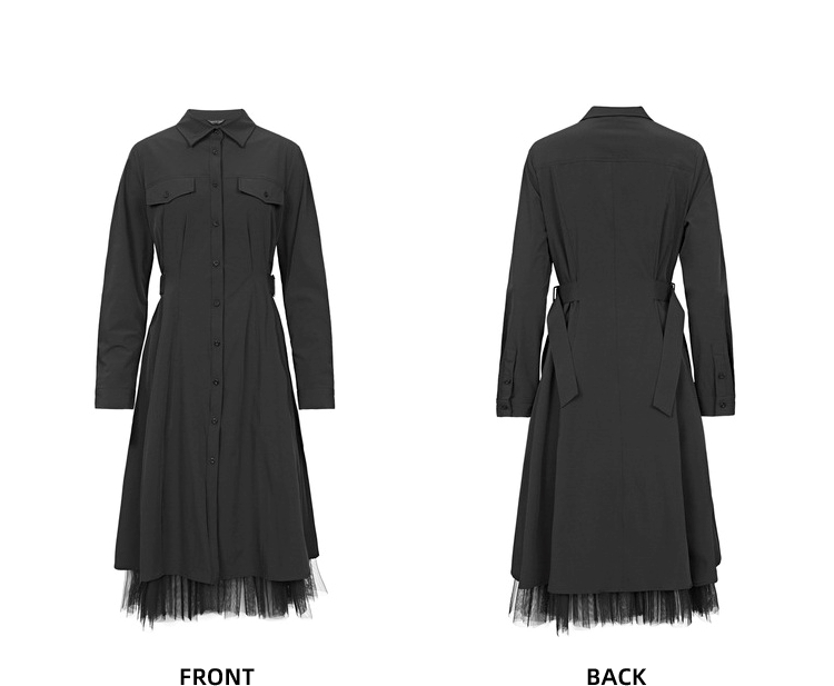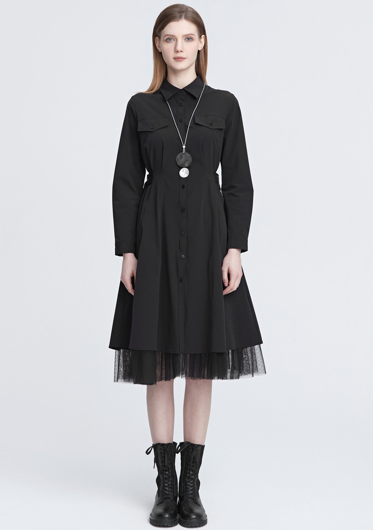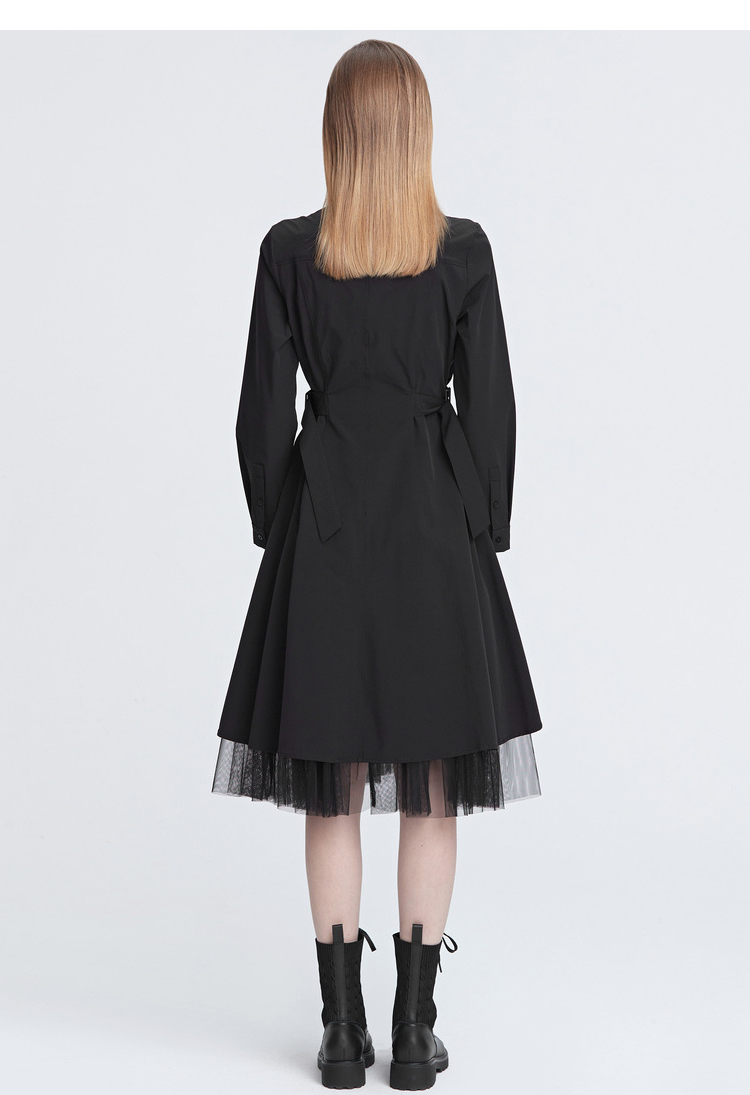 sdeer圣迪奧女裝秋裝法式氣質裙子網紗不規則襯衫連衣裙S22181216