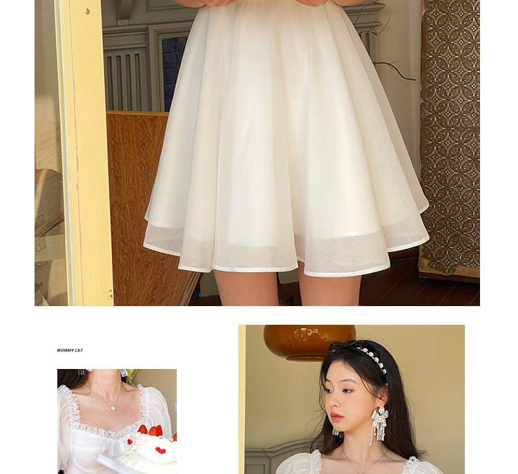 下蛋喵2022春夏宮廷復古方領泡泡白色紗裙生日派對小禮服裙連衣裙