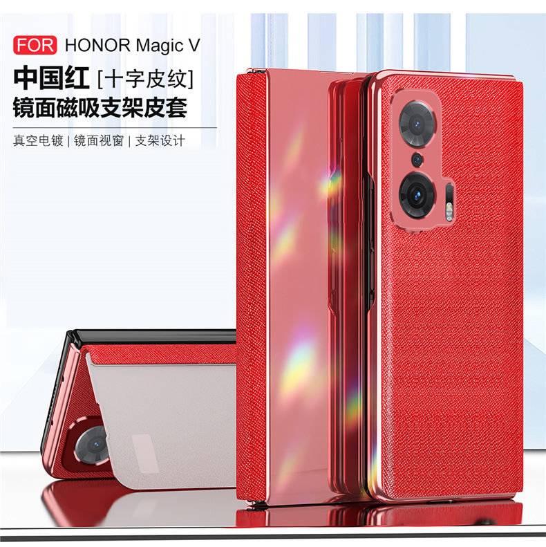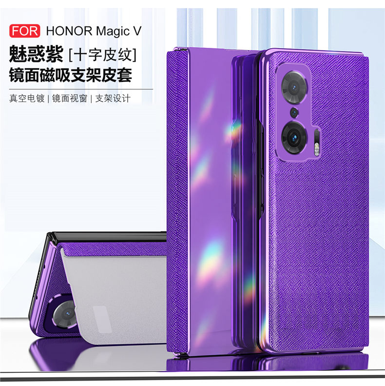 榮耀magicv手機殼magic v高檔奢華maigcv折疊屏支架maglcv智能皮套MGI一AN00前后全包ANOO合蓋5g鏡面視窗外殼