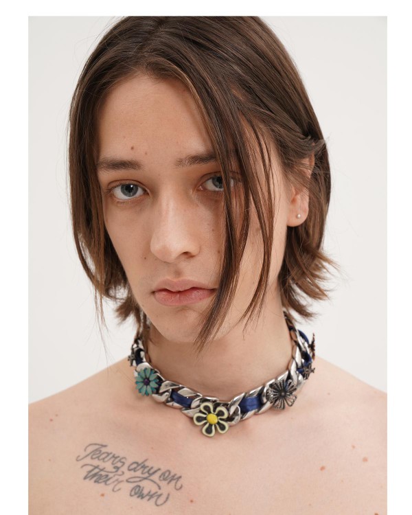 玩物制造 4Tra 20FW做舊鈦鋼項鏈男設計感緞帶花卉可調節古巴鏈女