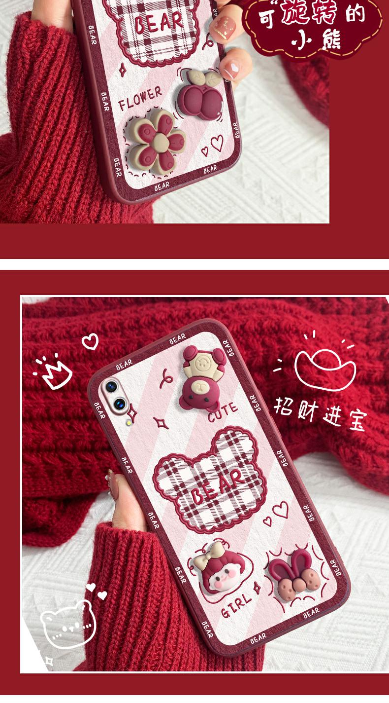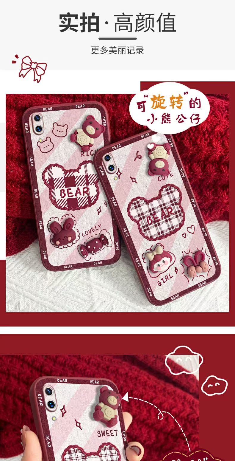 vivox23幻彩版手機殼x23旋轉小熊X23液態硅膠VIVO可愛公仔女款X二三防摔直邊V1816A酒紅新款潮維沃全包保護套
