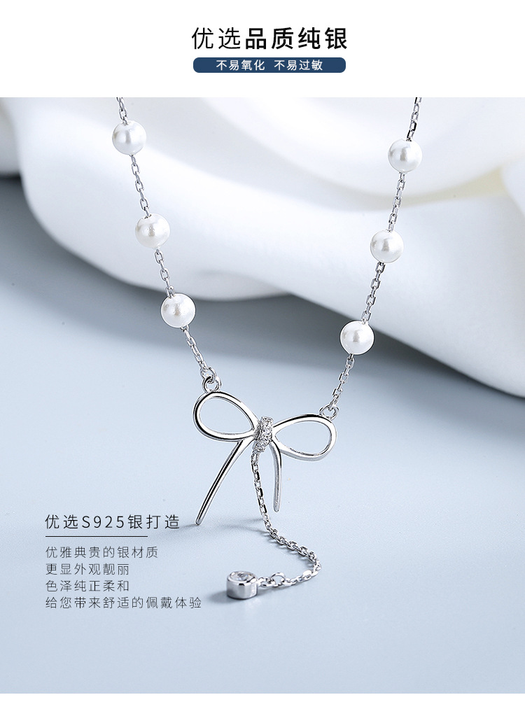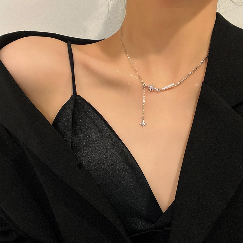 s925純銀項鏈輕奢小眾2023新款爆款珍珠閃鉆滿天星氣質Y字鎖骨鏈