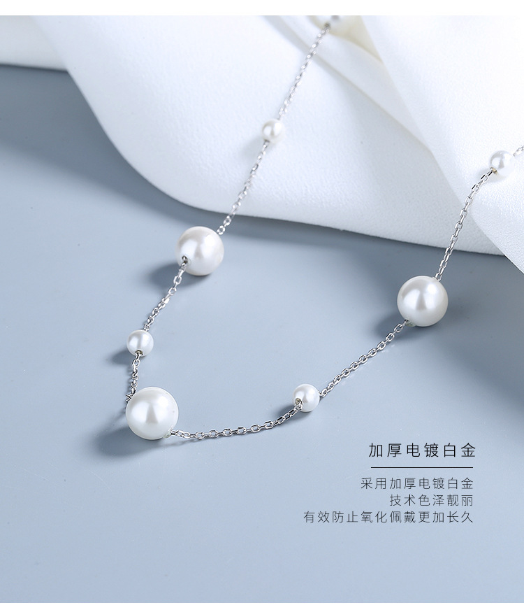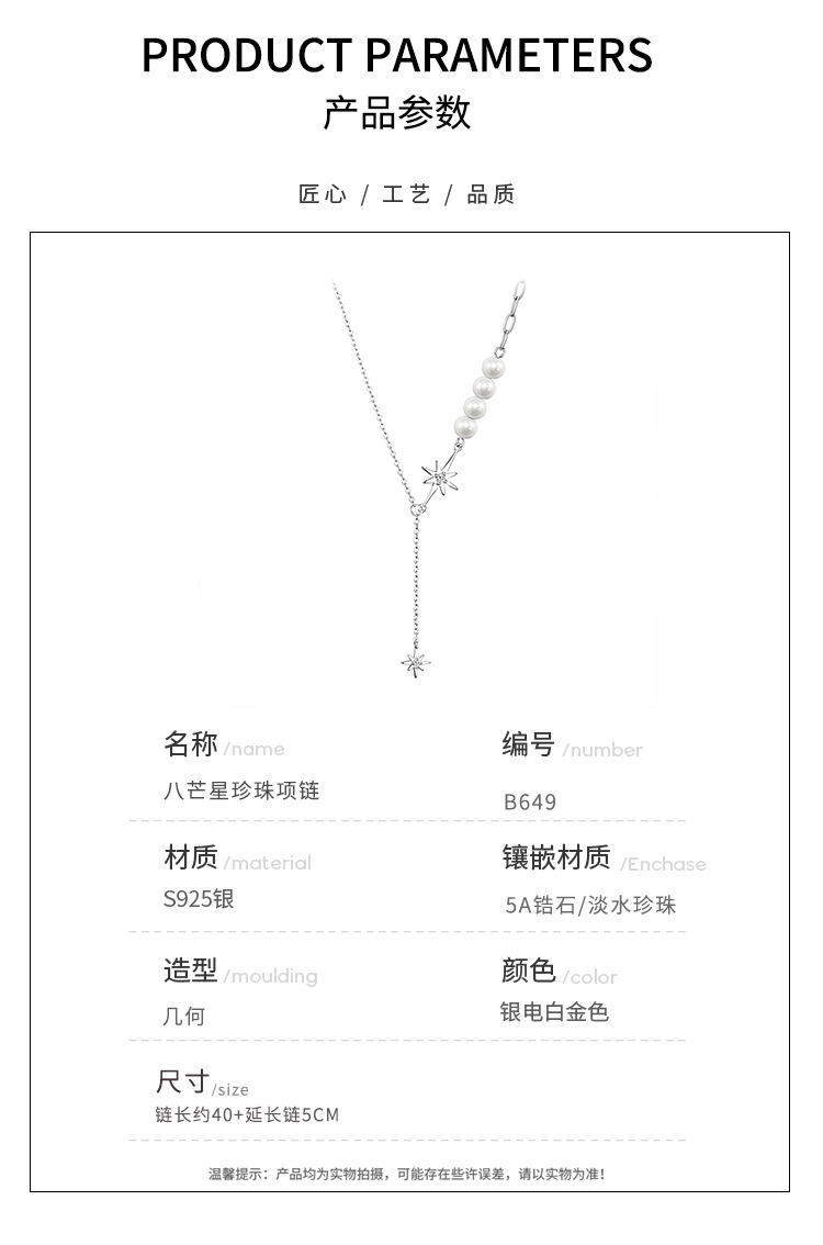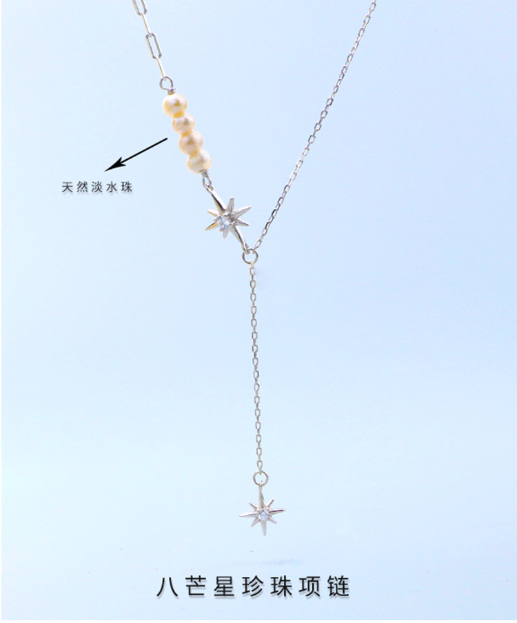S925純銀滿天星天然淡水珍珠項鏈女時尚精致百搭貝珠鎖骨鏈毛衣鏈