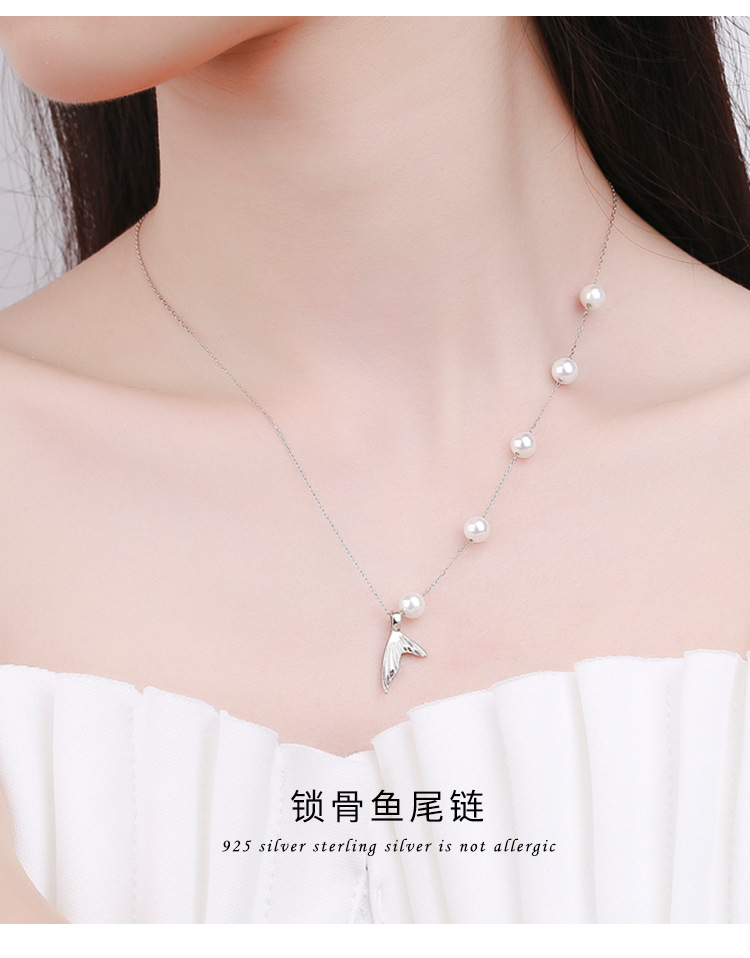 簡唯銀飾s925純銀貝珠魚尾拼接項鏈