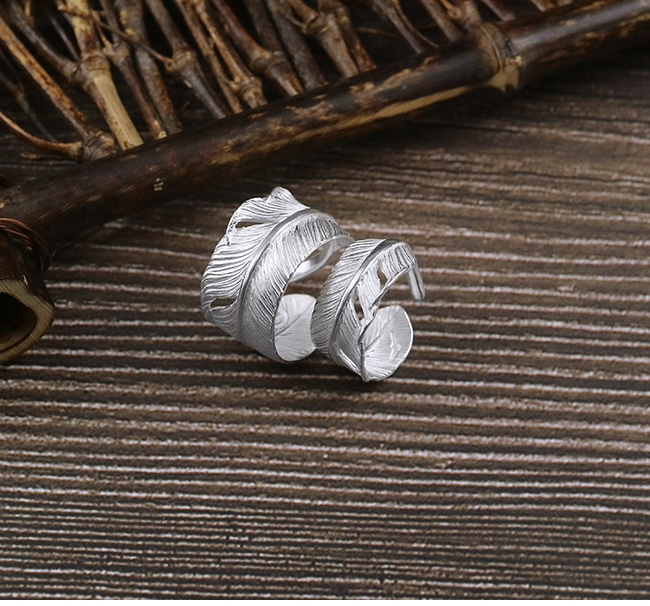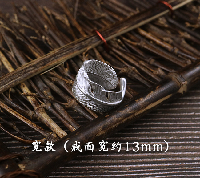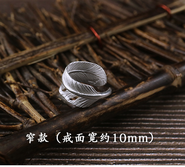 菊地健KEN KIKUCHI寬版窄版素羽毛戒指男女開口情侶對戒純銀尾戒
