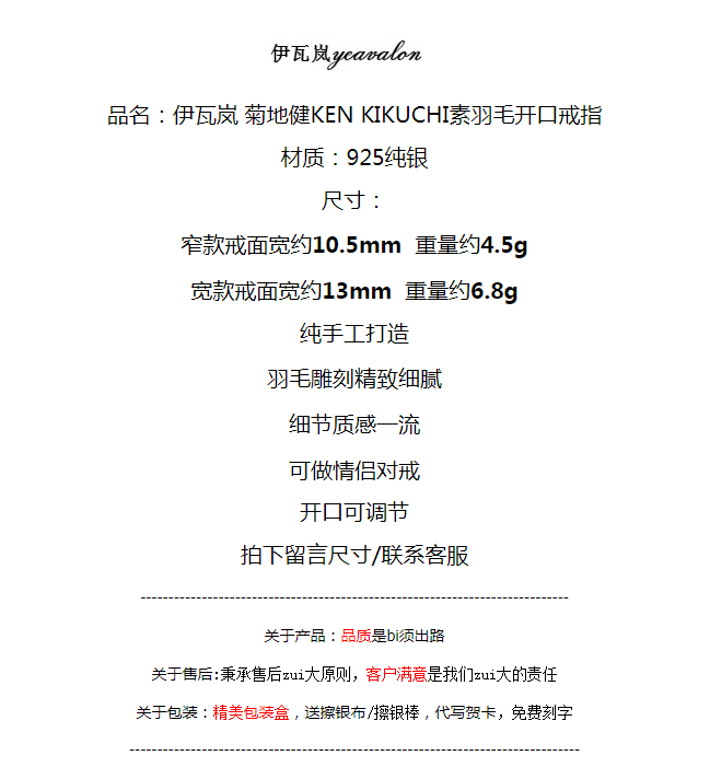 99¥ CZ3457 o97Cdzf8Se1¥ https://m.tb.cn/h.5VHOkPc 菊地健KEN KIKUCHI寬版窄版素羽毛戒指男女開口情侶對戒純銀尾戒 --------------------- 菊地健KEN KIKUCHI寬版窄版素羽毛戒指男女開口情侶對戒純銀尾戒 --------------------- 【原售價】128元 【優惠券】10元 【券后價】118元。